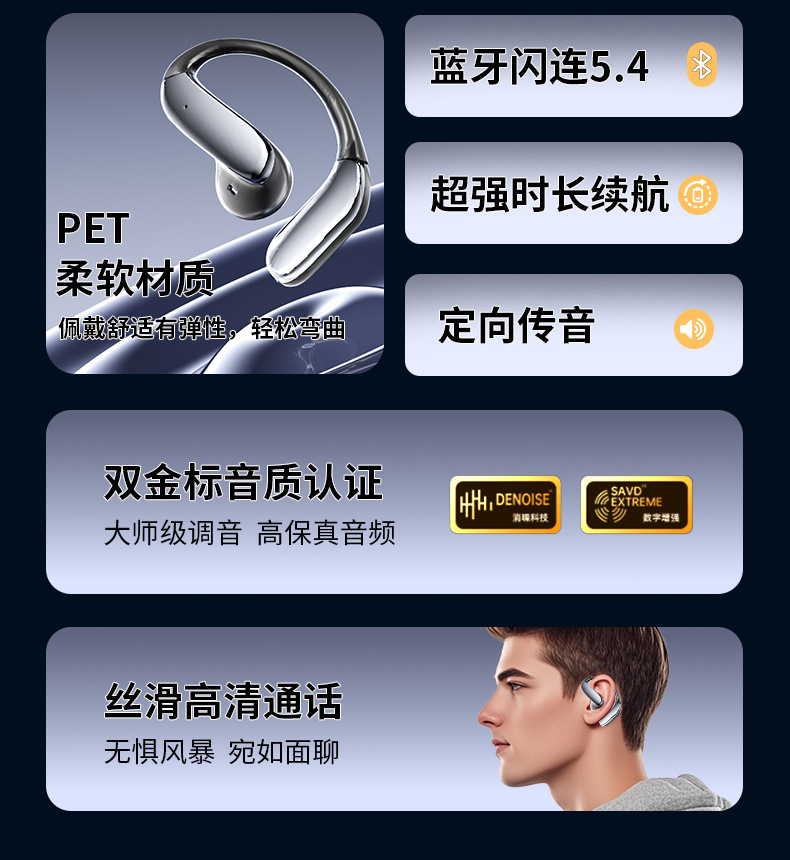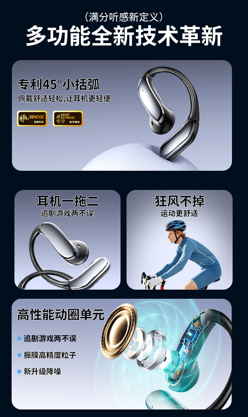 听歌不入耳蓝牙耳机降噪运动式续航新款骨传导高音质耳夹超长2025