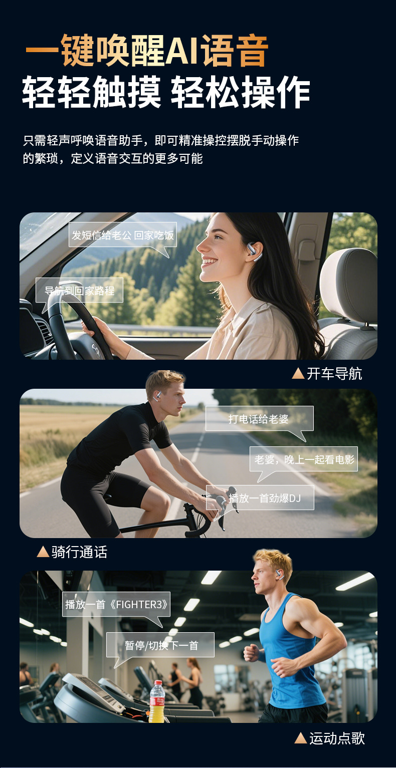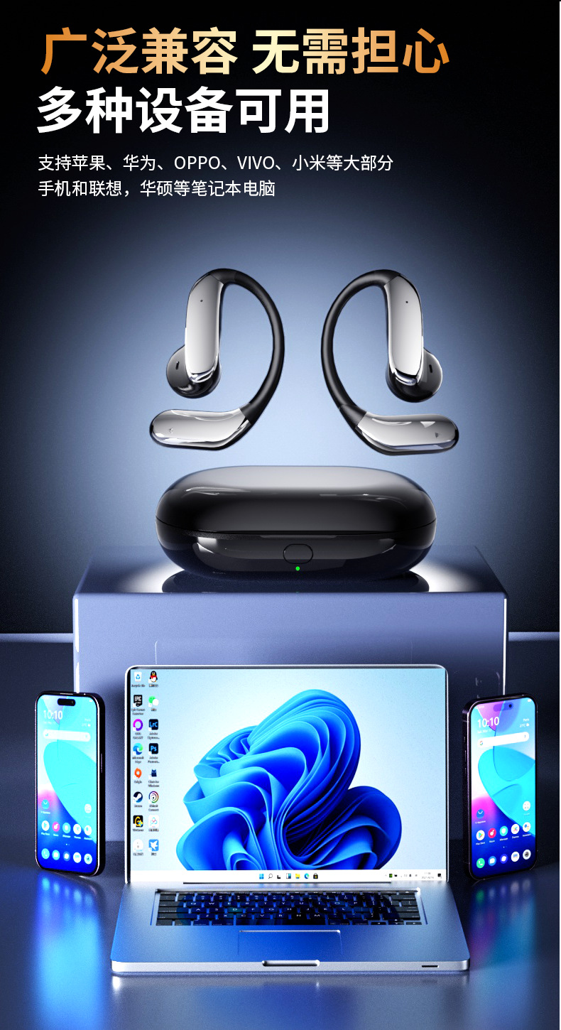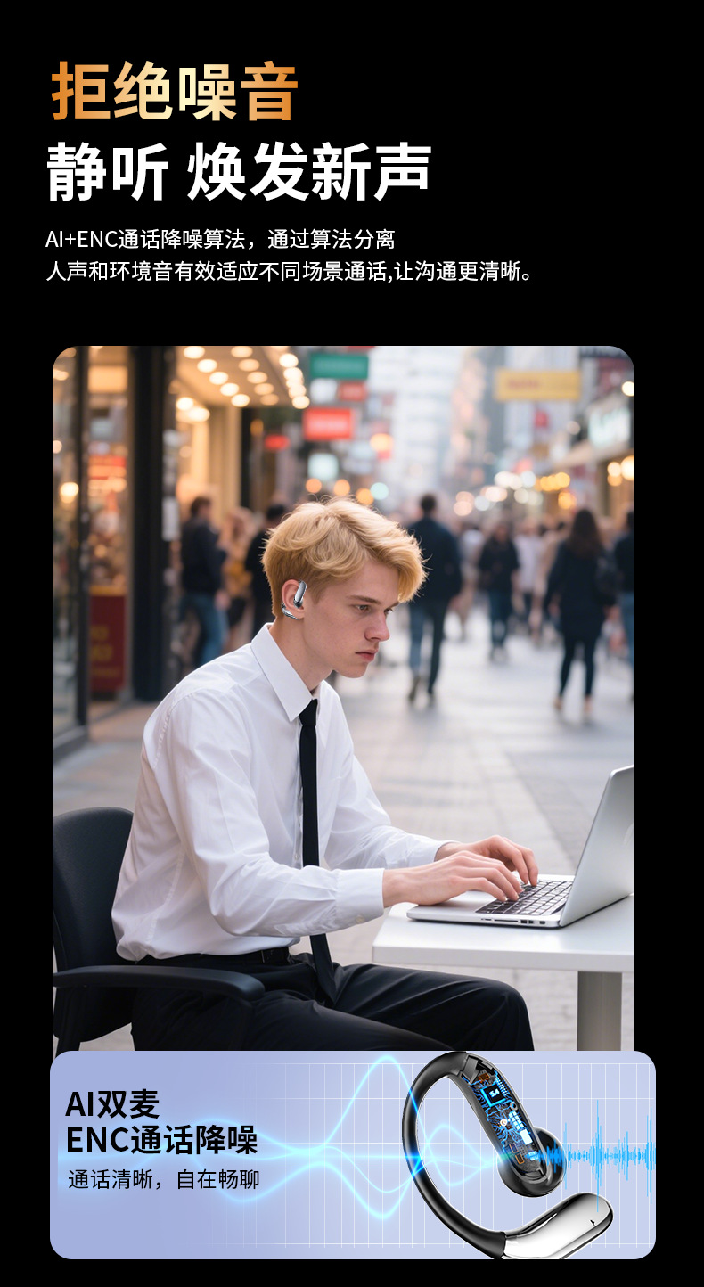 新款蓝牙耳机Ai智能翻译运动无线挂耳式耳机气骨传导超长续航