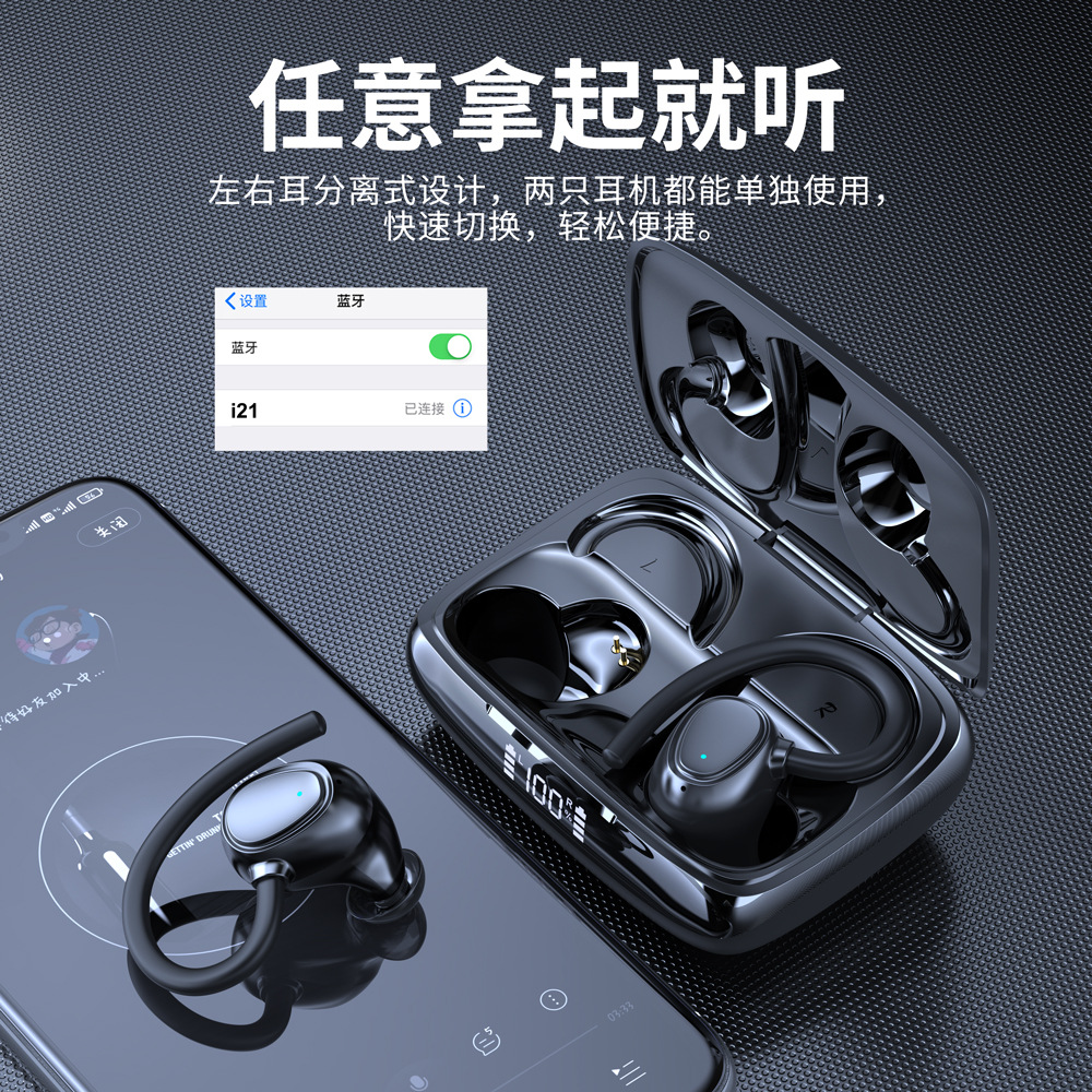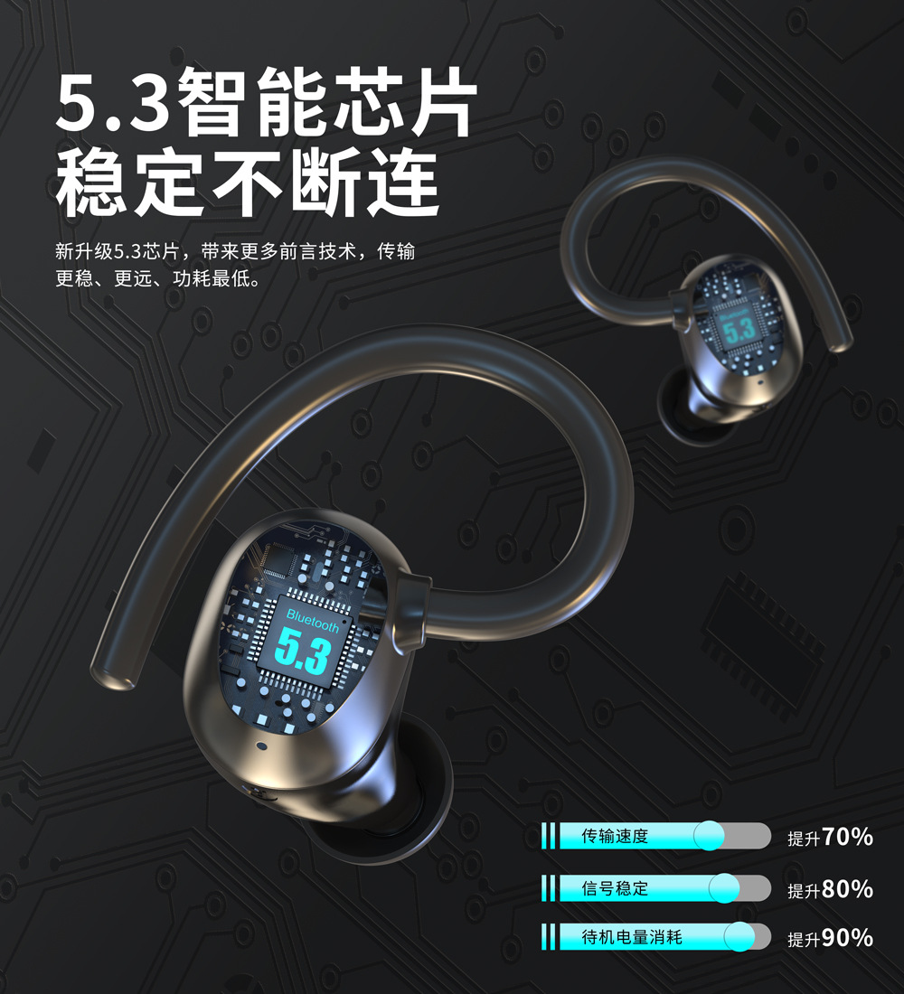 tws蓝牙耳机游戏电竞续航高音质智能数显挂耳式无线耳机