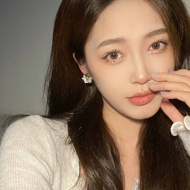春夏新款气质甜美水晶珍珠花朵耳钉独特小众设计感网红耳环耳饰品