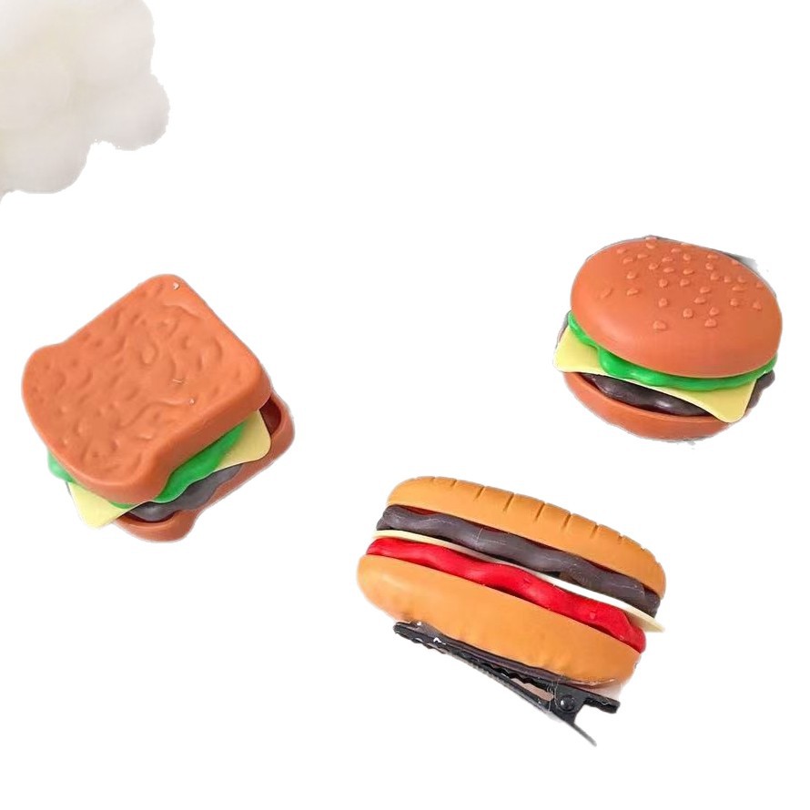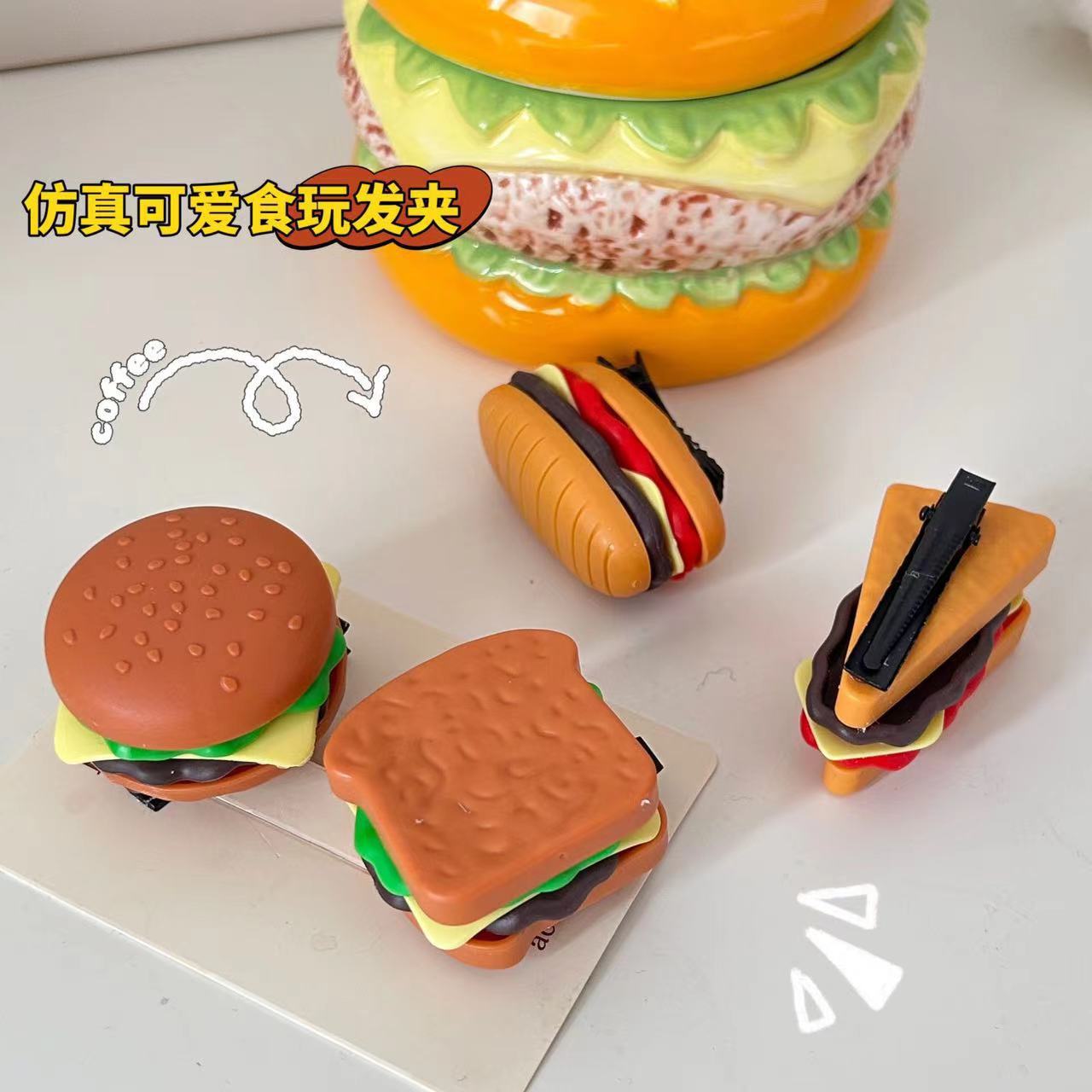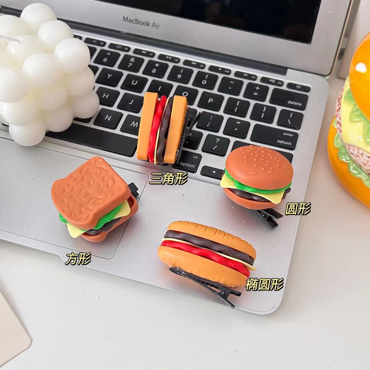 趣味仿真汉堡发夹创意搞怪食物鸭嘴夹头饰