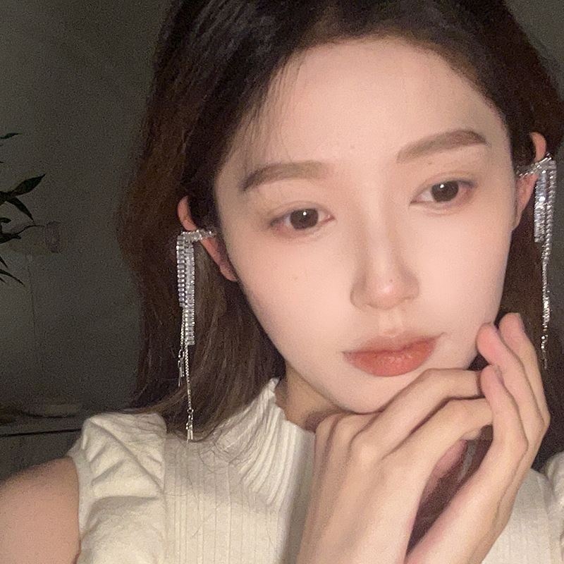 精致超闪锆石金属亮片流苏耳骨夹女气质长款无耳洞耳夹新款