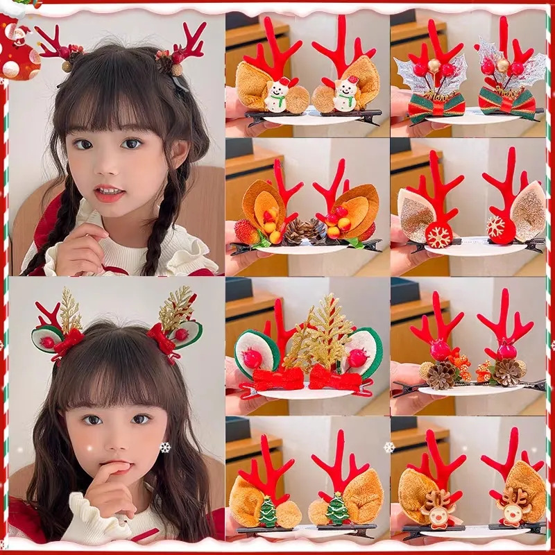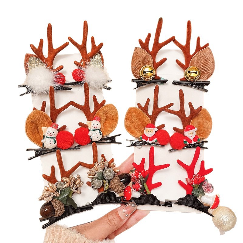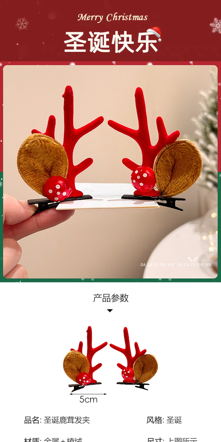 圣诞节头饰小女孩麋鹿森系发卡圣诞老人对夹儿童发夹鹿角圣诞发饰