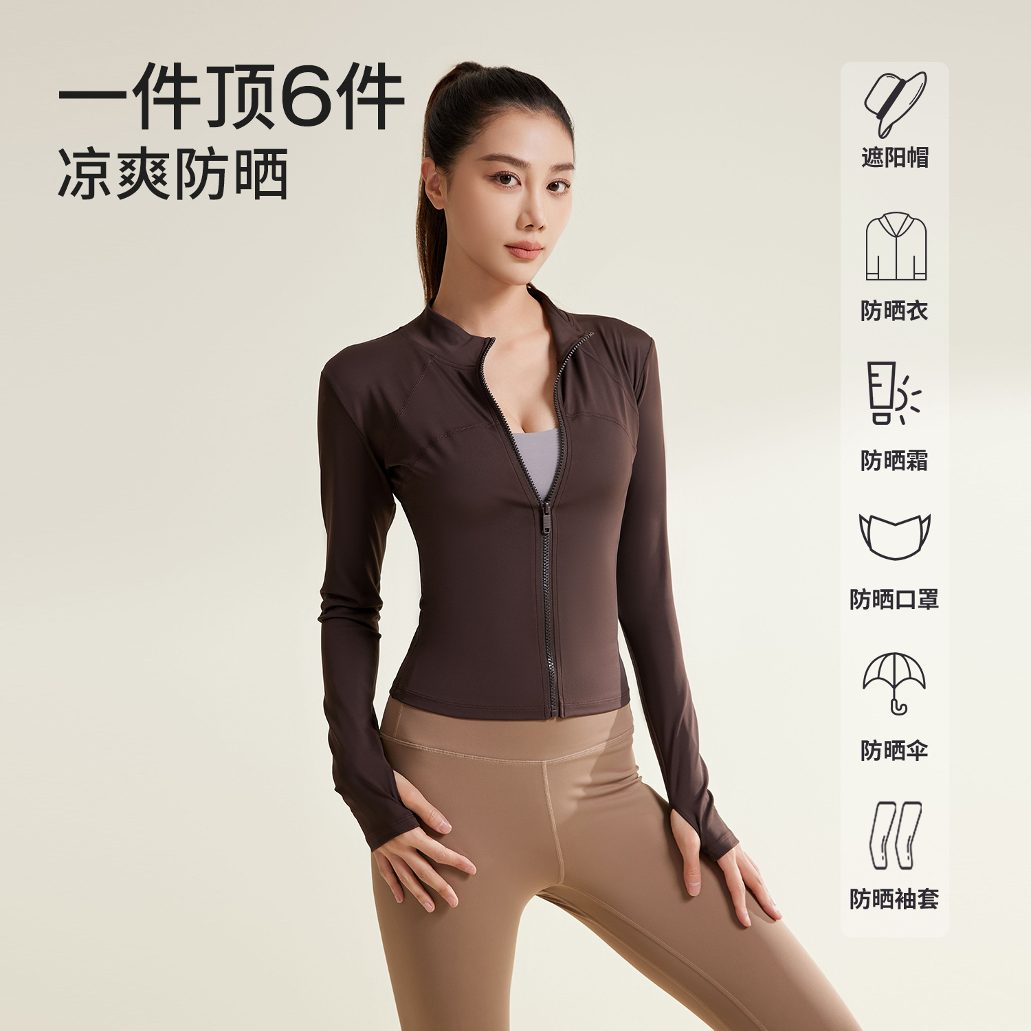聚衣堂拼线瑜伽外套速干透气防紫外线健身衣显瘦轻薄防晒衣