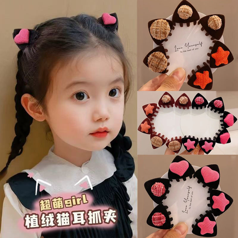 秋冬时尚儿童猫耳朵抓夹可爱植绒豆豆发夹宝宝公主碎发刘海安全夹