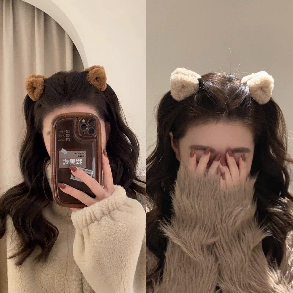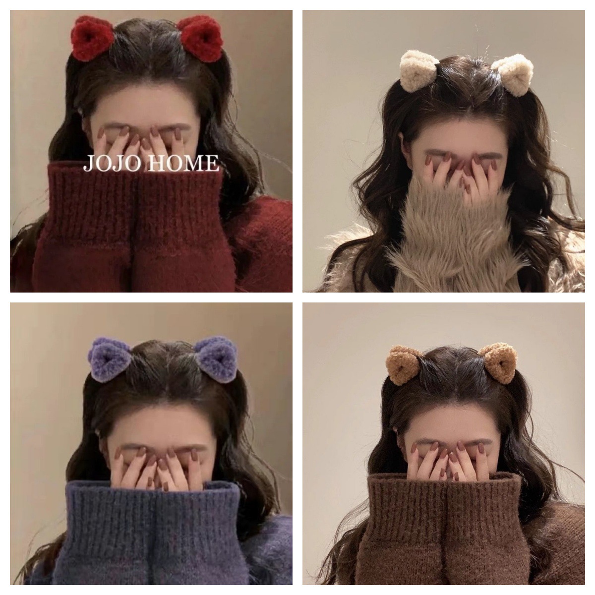 新年红色羊羔毛可爱猫耳朵小抓夹甜美女孩三角形顶夹侧边发夹头饰