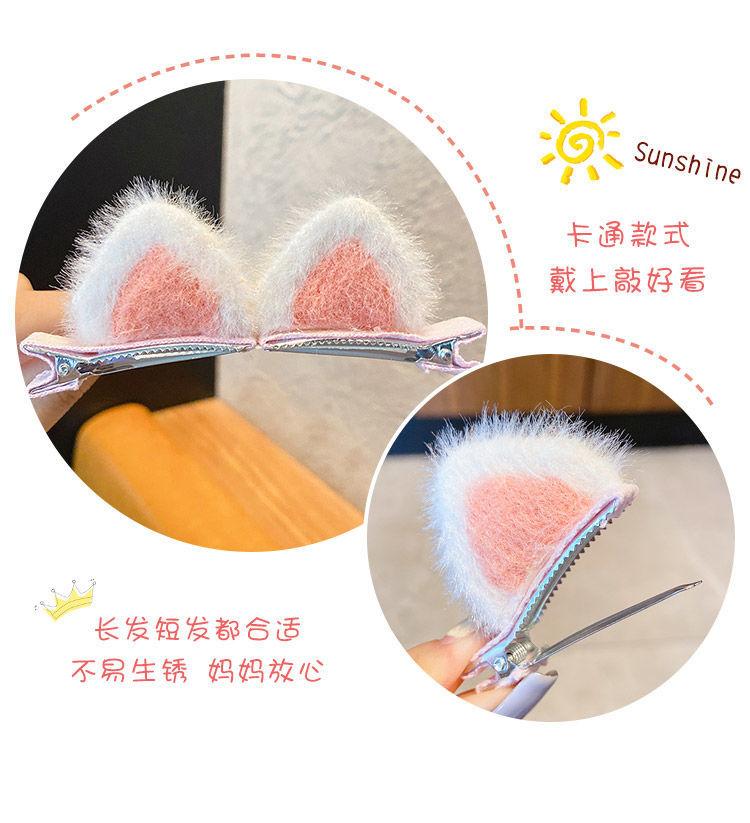 猫耳朵毛绒发夹女童刘海发卡宝宝儿童发饰秋冬女孩可爱布料