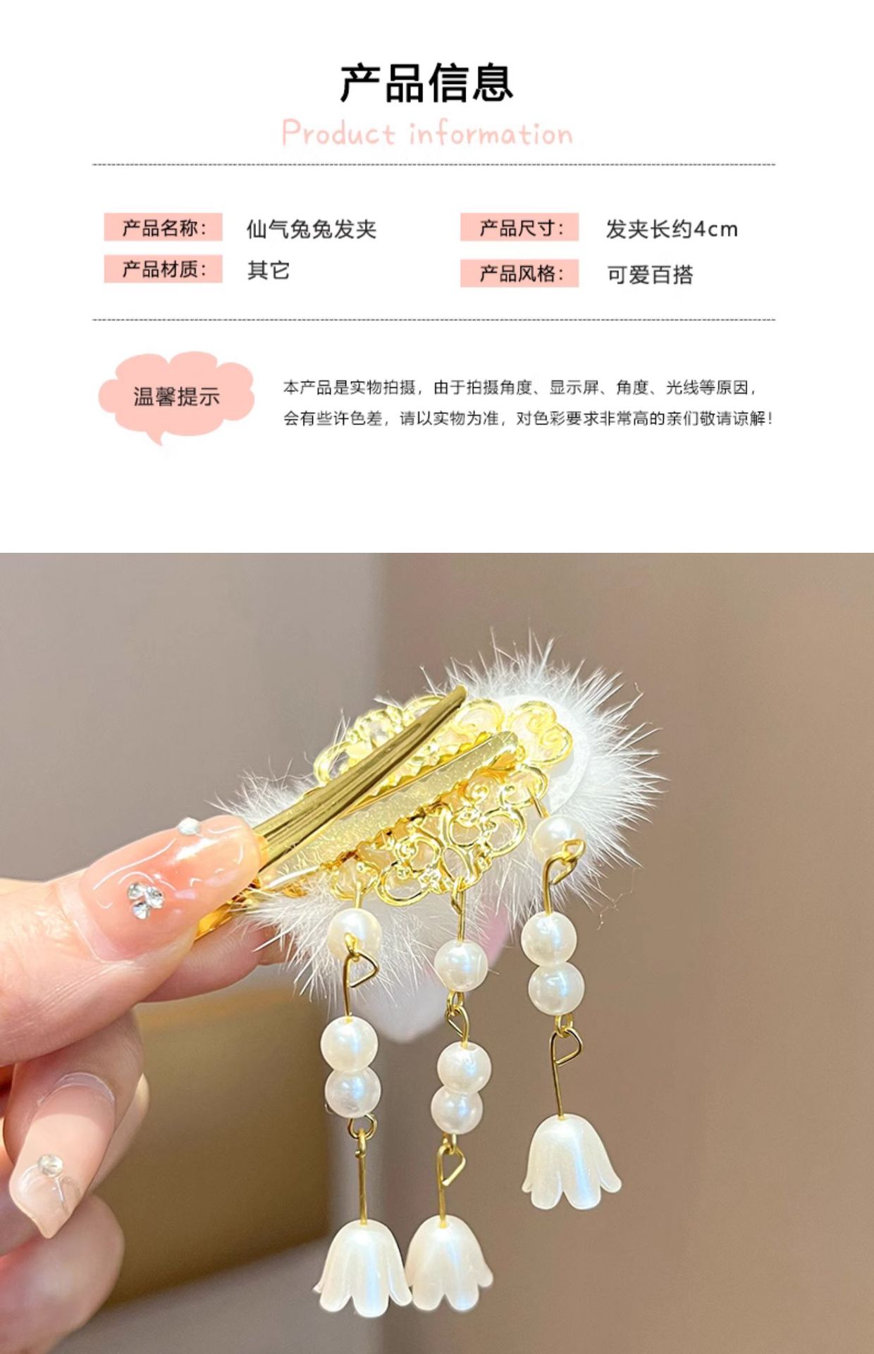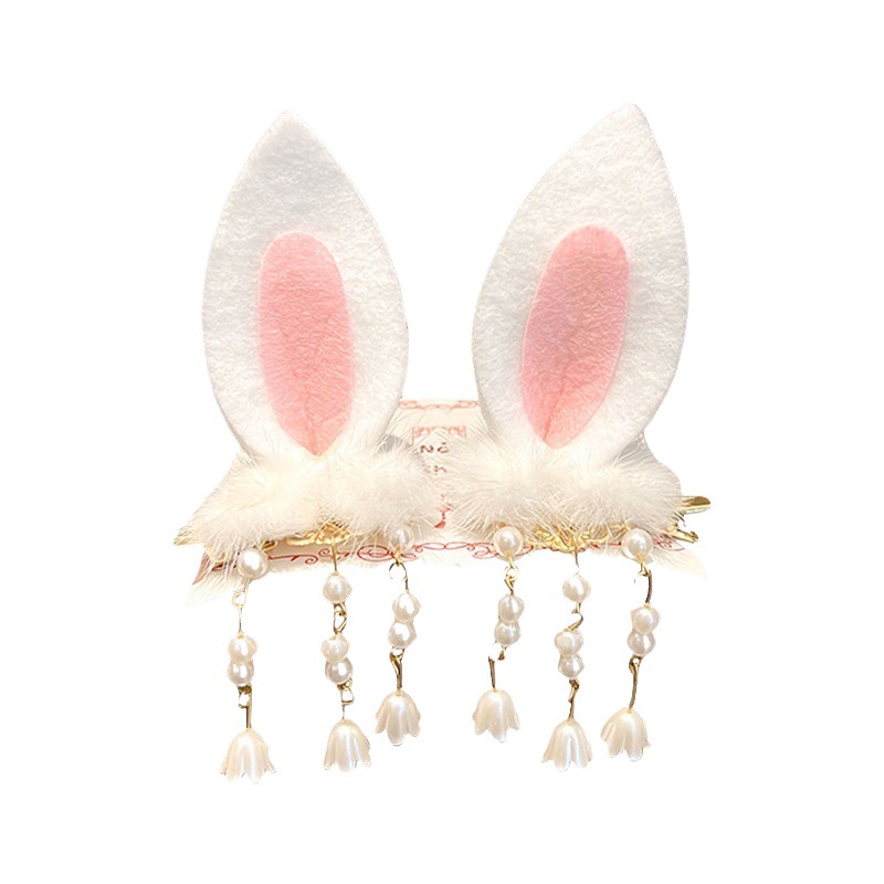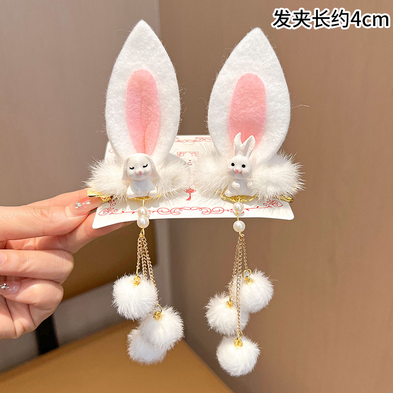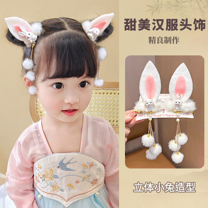 古风发夹儿童可爱兔耳朵发饰女童汉服流苏头饰毛绒发卡子超萌宝宝