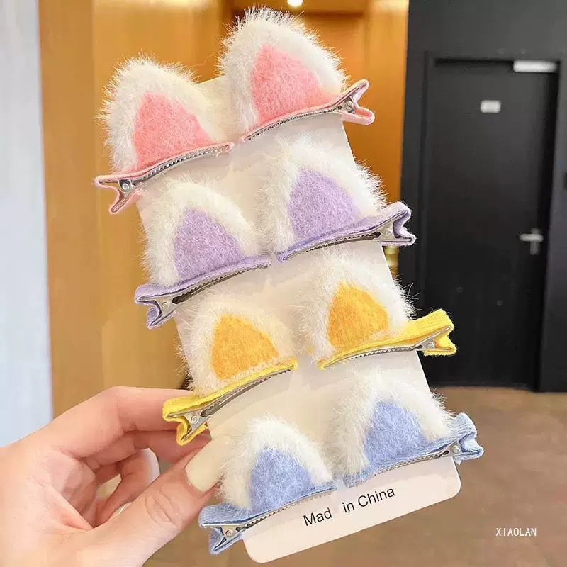 新款立体毛绒猫咪耳朵发夹刘海夹儿童发夹侧边夹女童可爱发饰