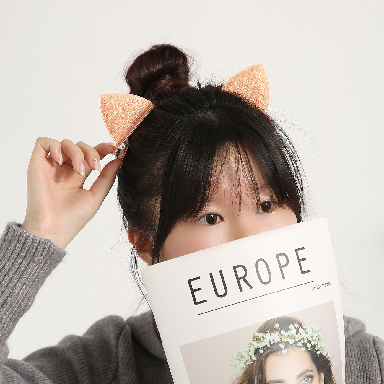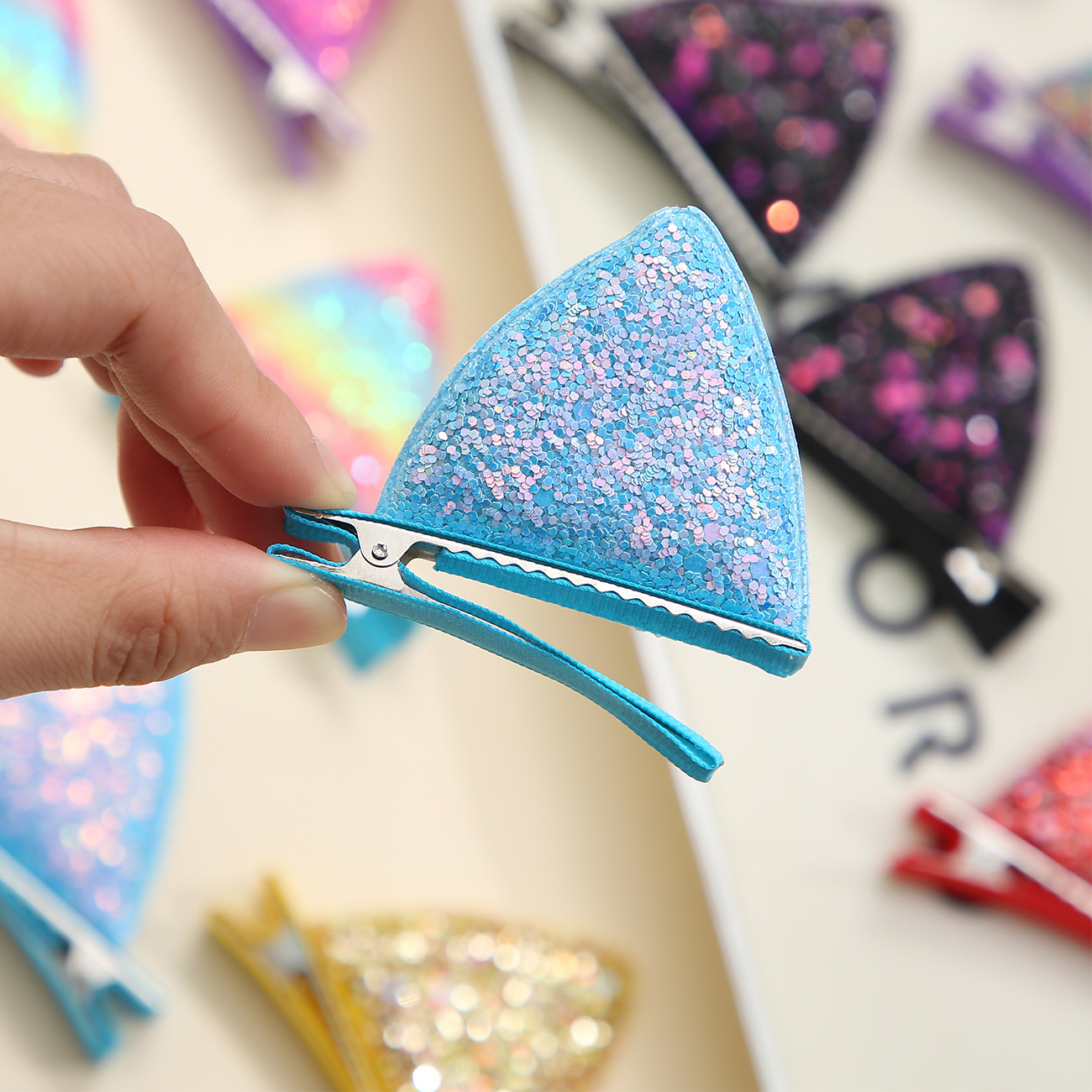 新款糖果色女童发夹可爱百搭公主猫耳朵鸭嘴夹卡通包布刘海夹发饰