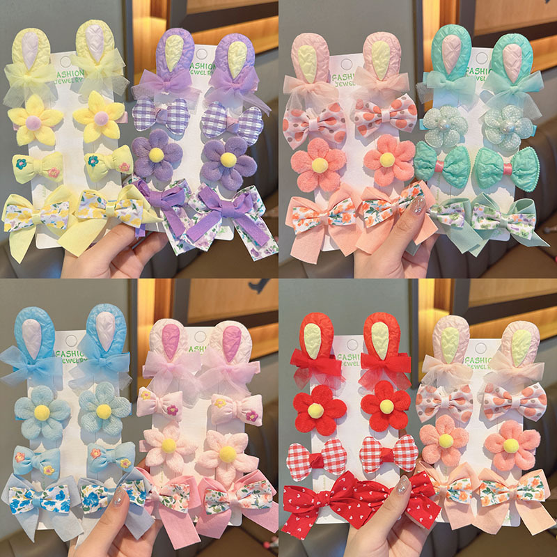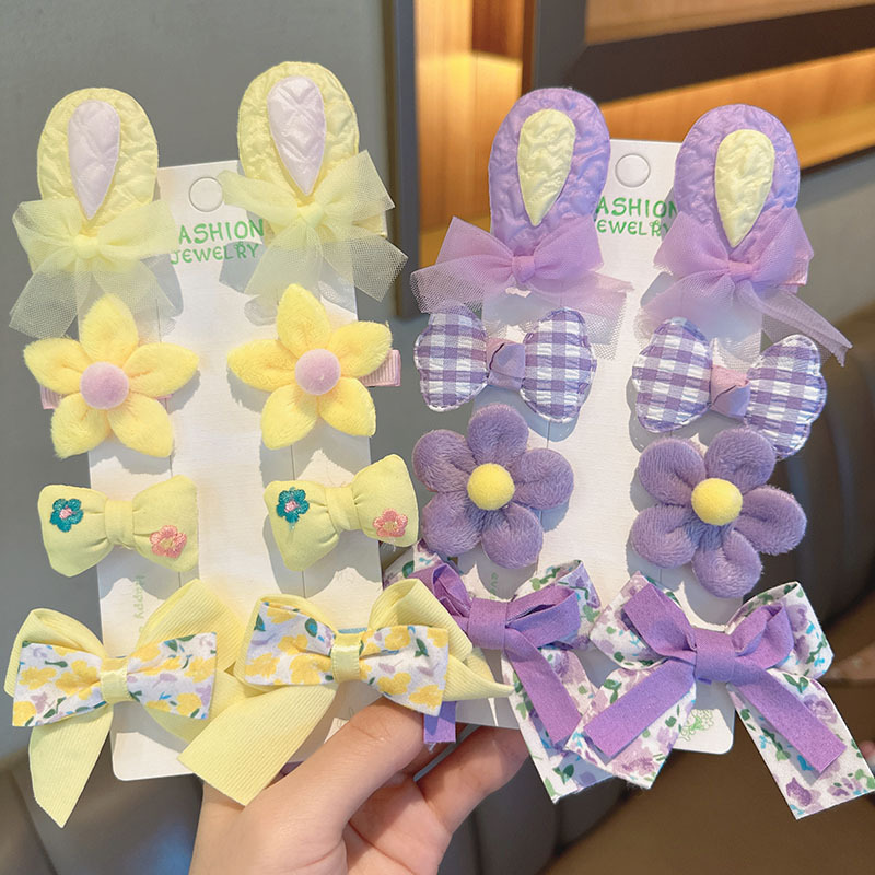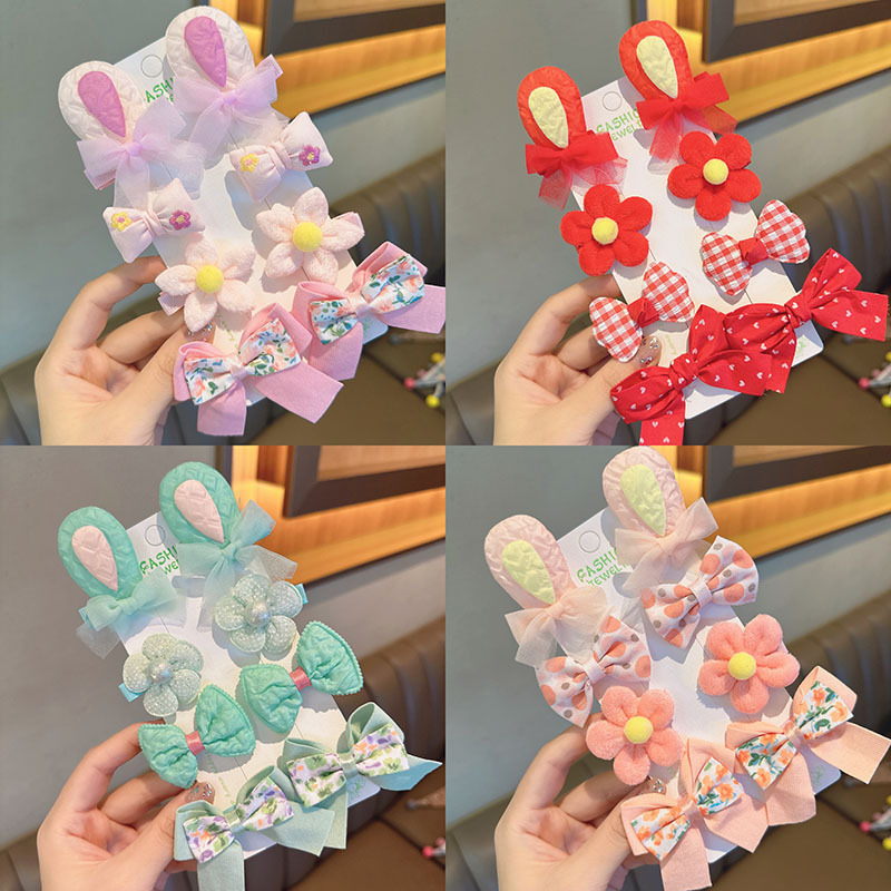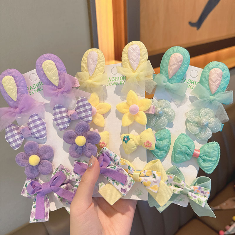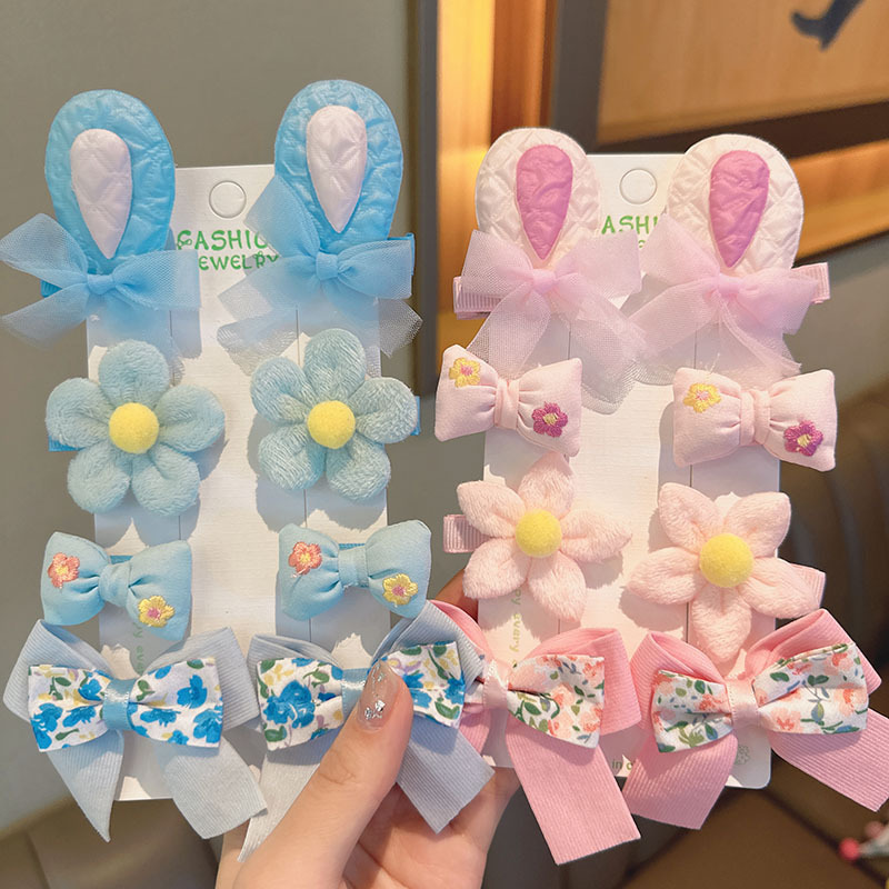 蝴蝶结发夹布艺刺绣花朵发卡女童刘海夹不伤发卡通兔耳朵碎发夹