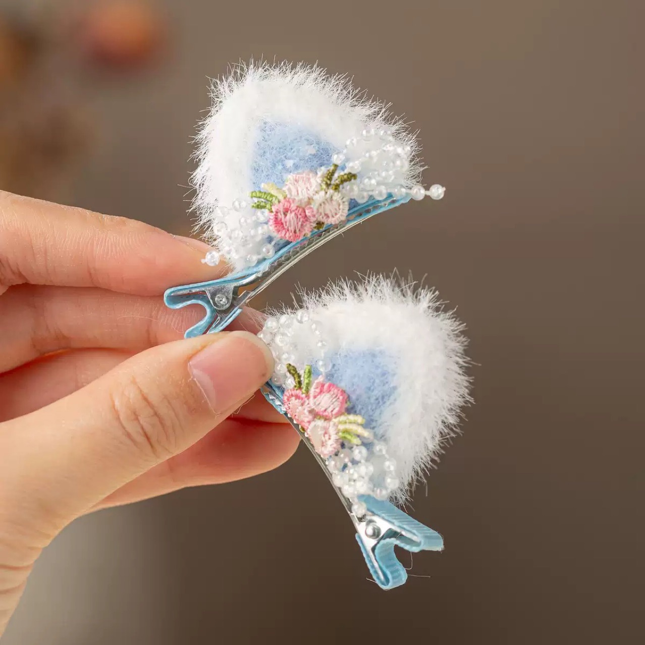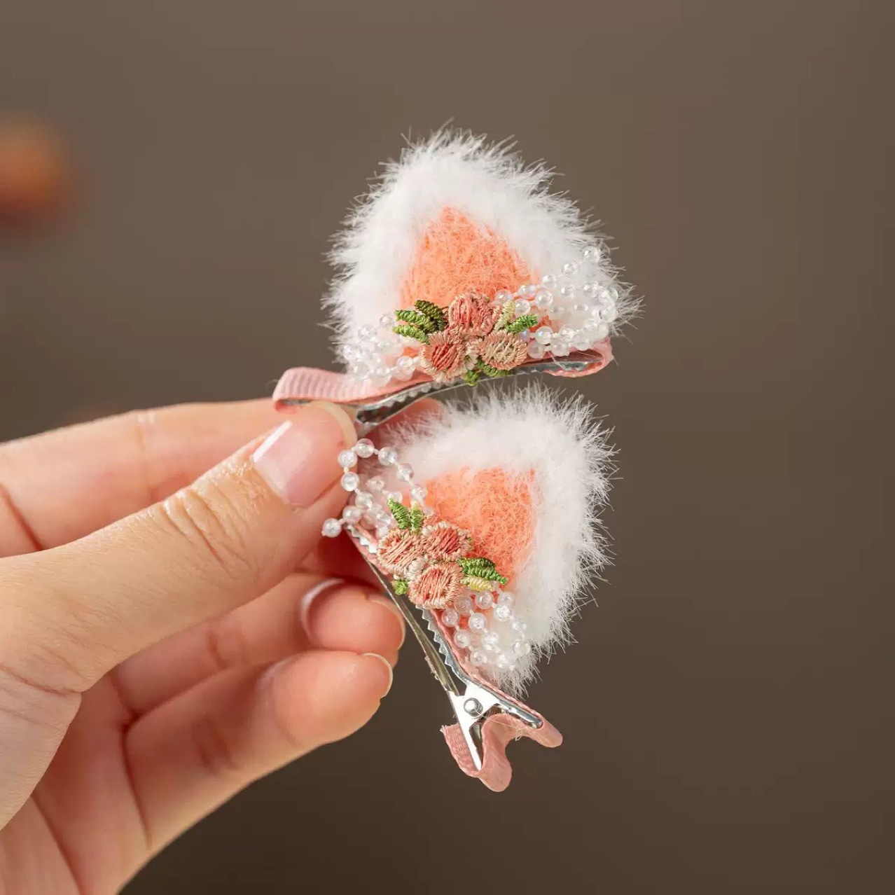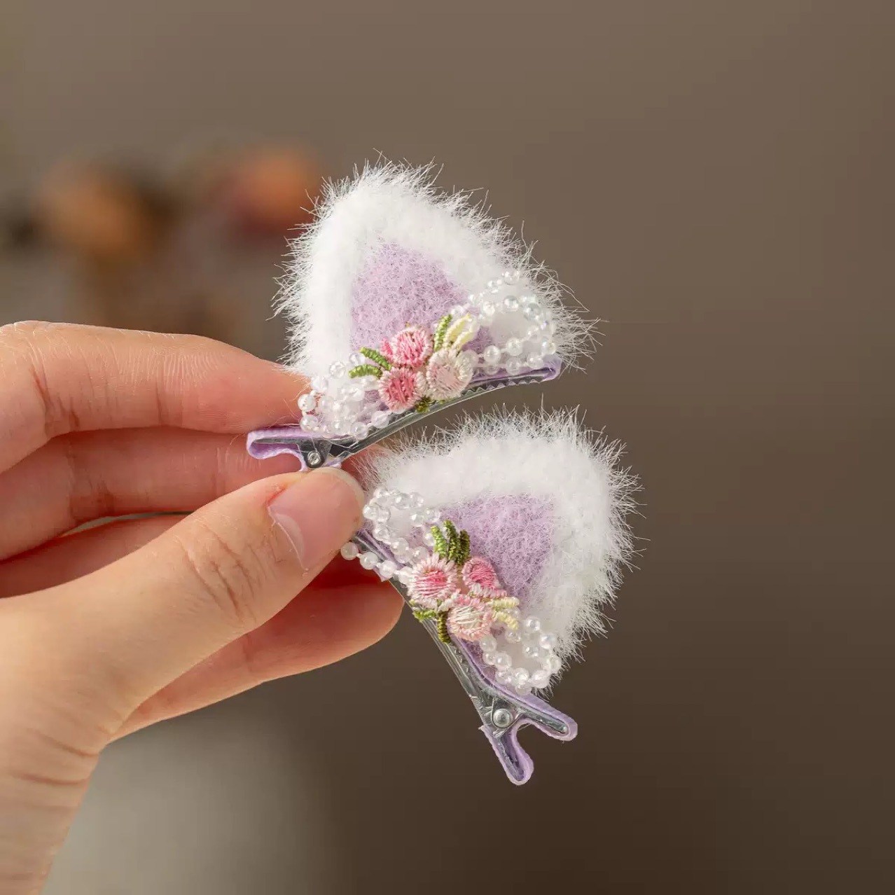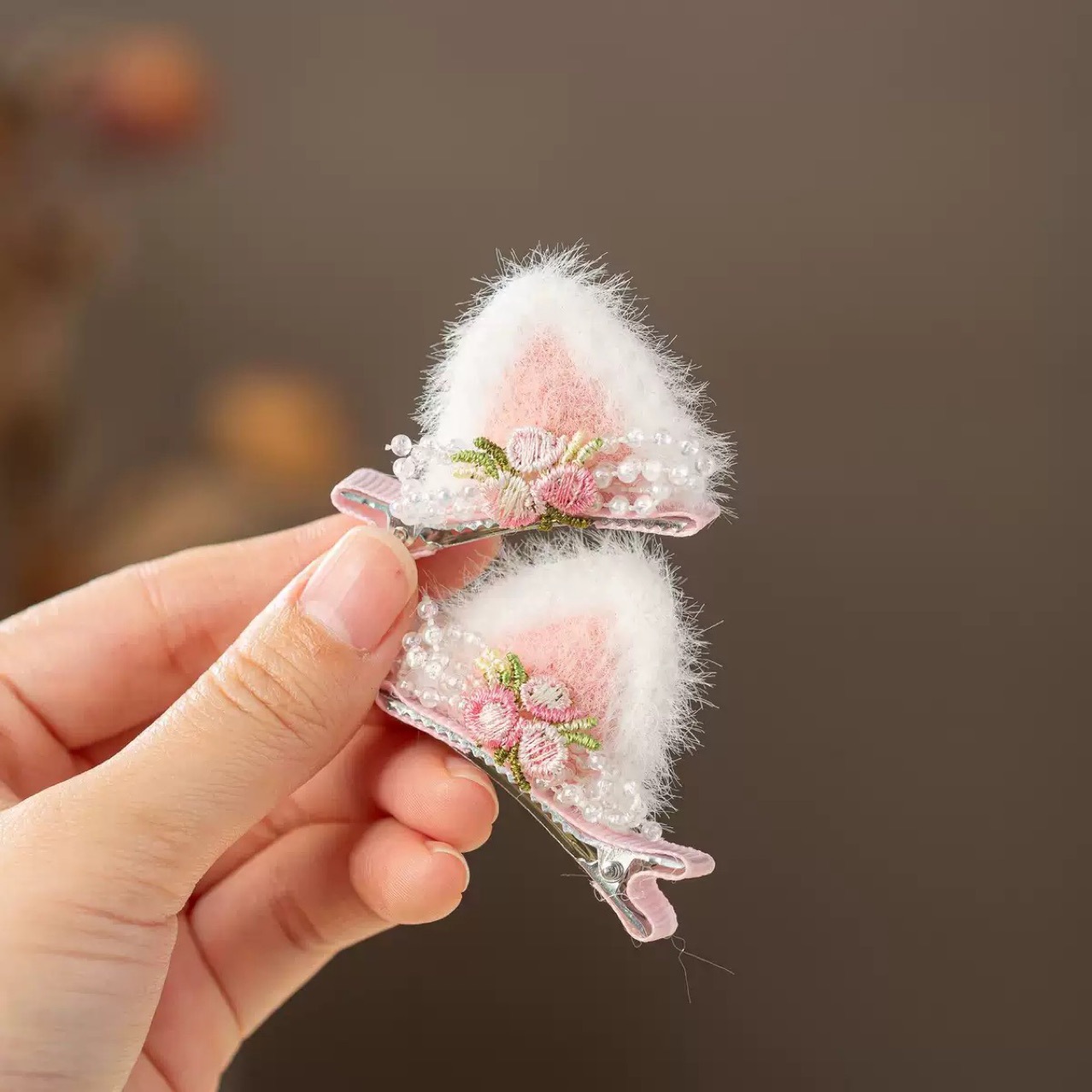 儿童猫耳朵发圈发绳可爱洛丽塔甜美对夹宝宝立体发夹发卡女童配饰
