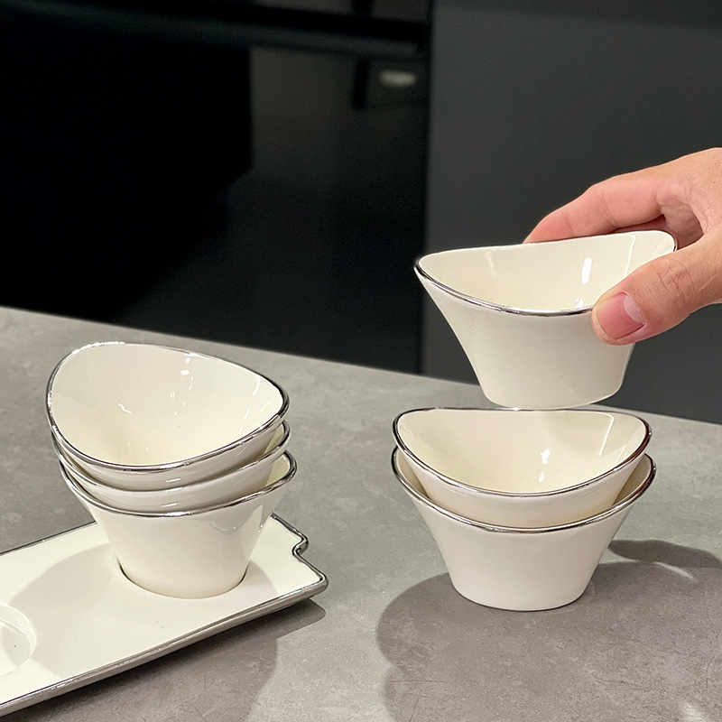 高颜值元宝碟新款陶瓷创意小碟零食碟盘套装三碟零食小吃碟酱料碟
