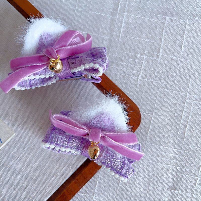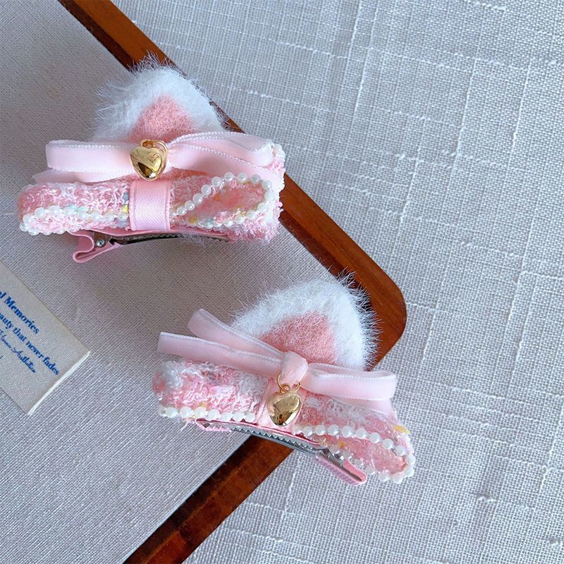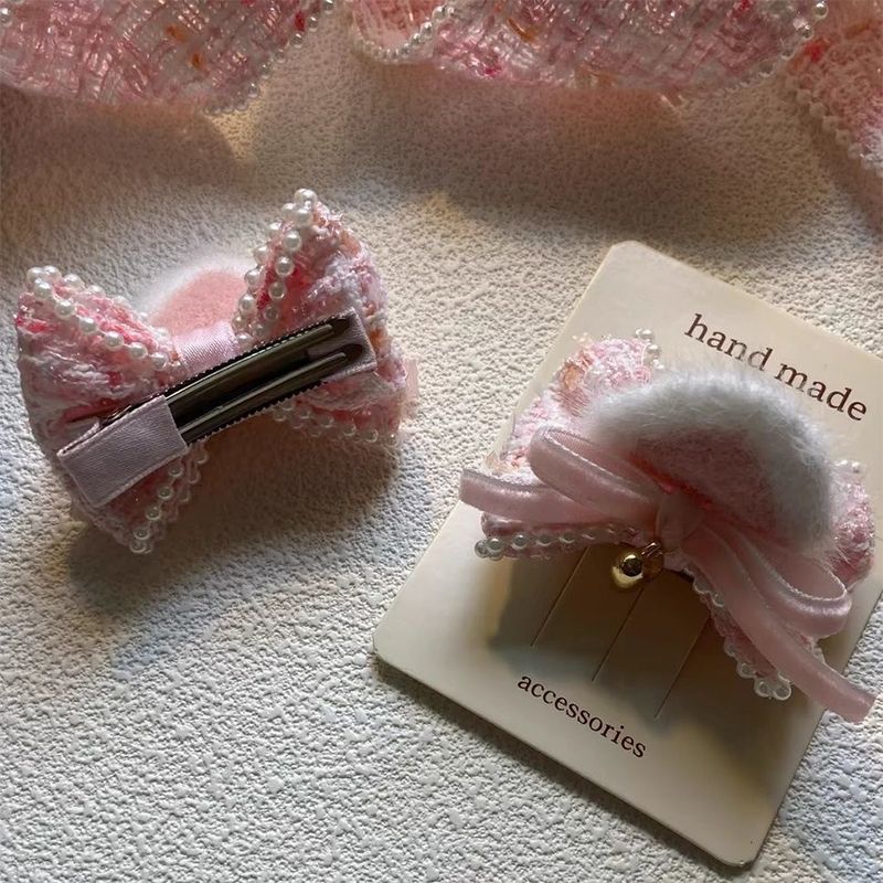 女童2025秋冬手作毛绒猫耳朵蝴蝶结爱心发夹小香风立体喵喵耳发饰