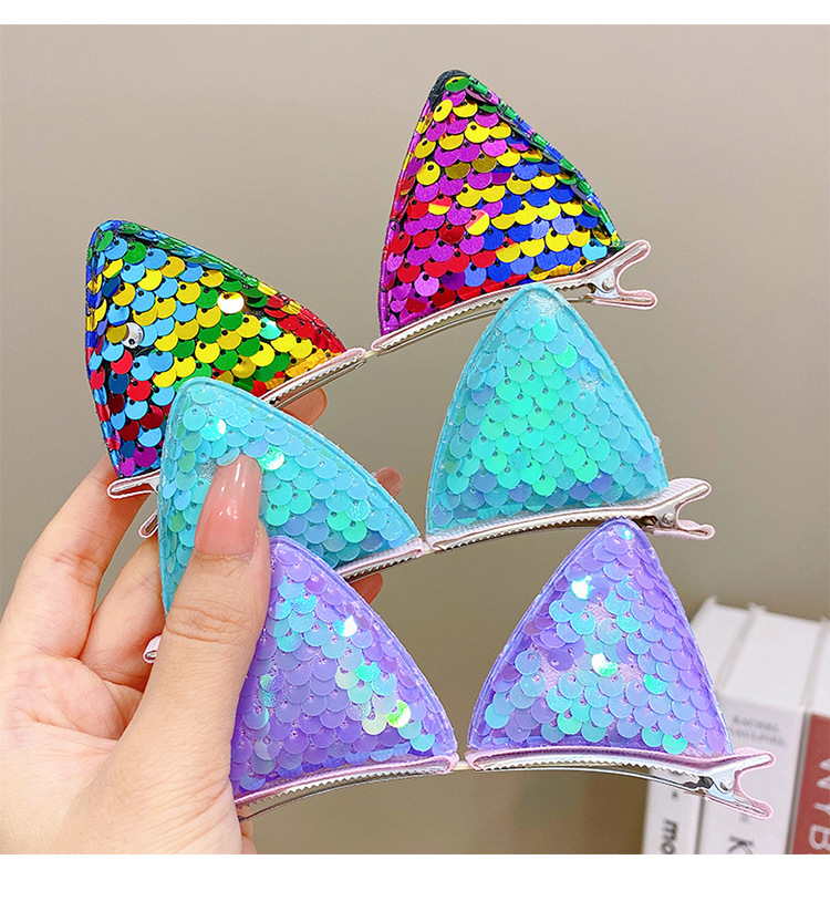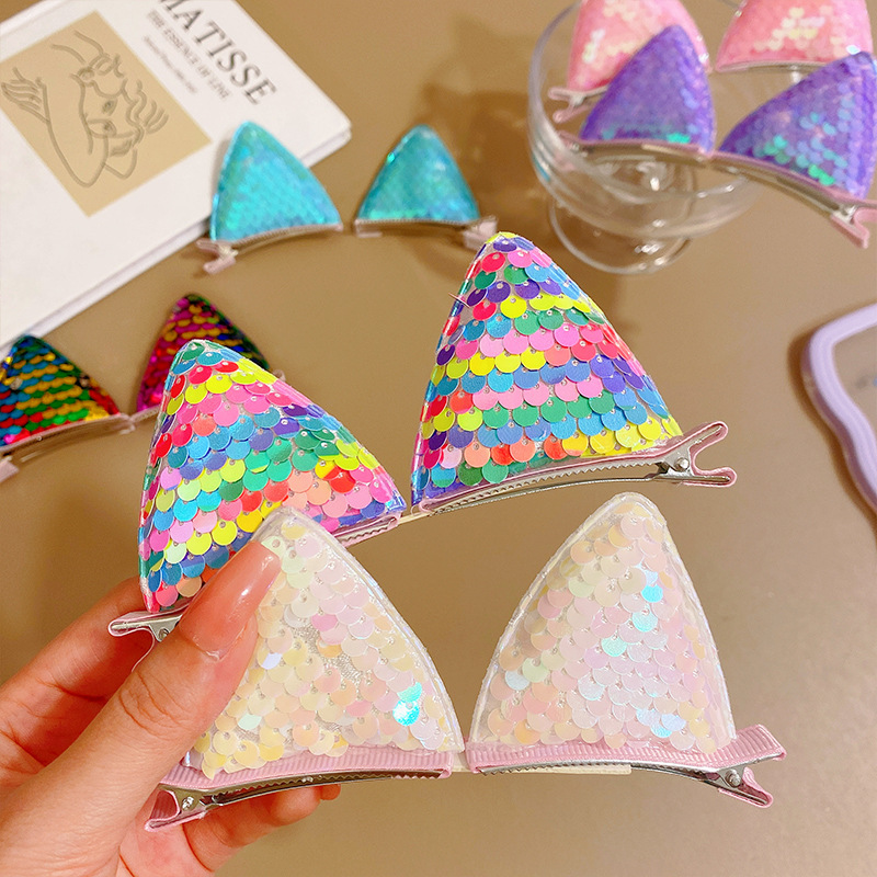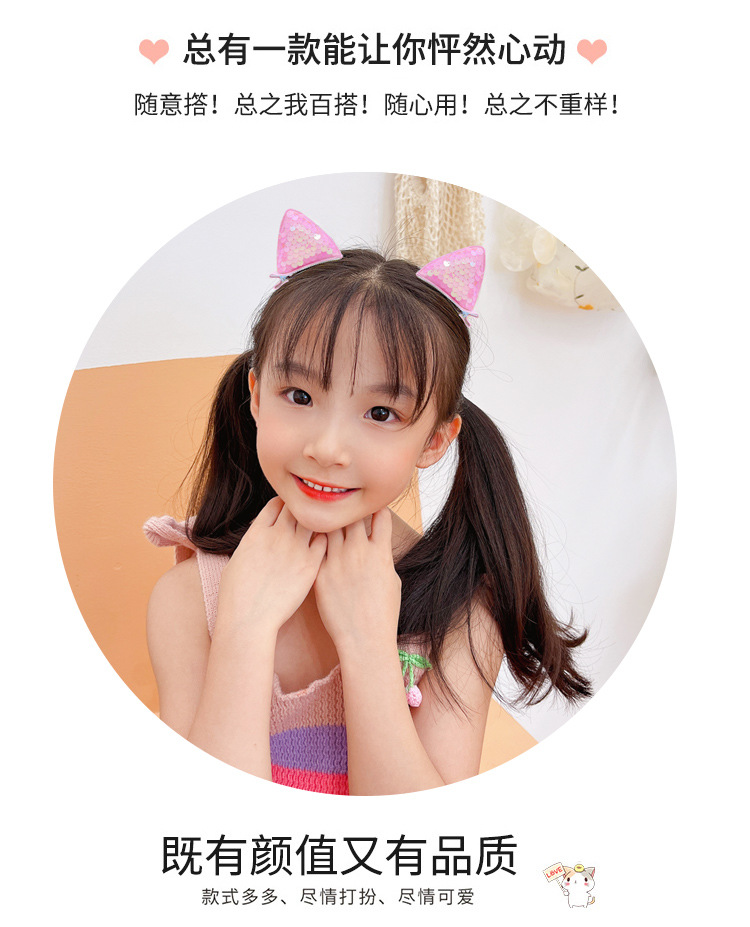 新款亮片猫耳朵发夹儿童女童小女孩宝宝可爱发卡夹子发饰头饰