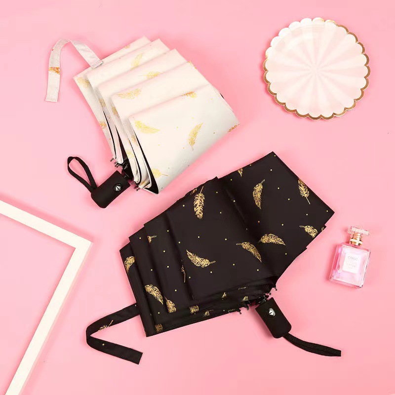 小清新版羽毛三折伞黑胶防晒太阳伞折叠防紫外线学生伞uv遮阳雨伞