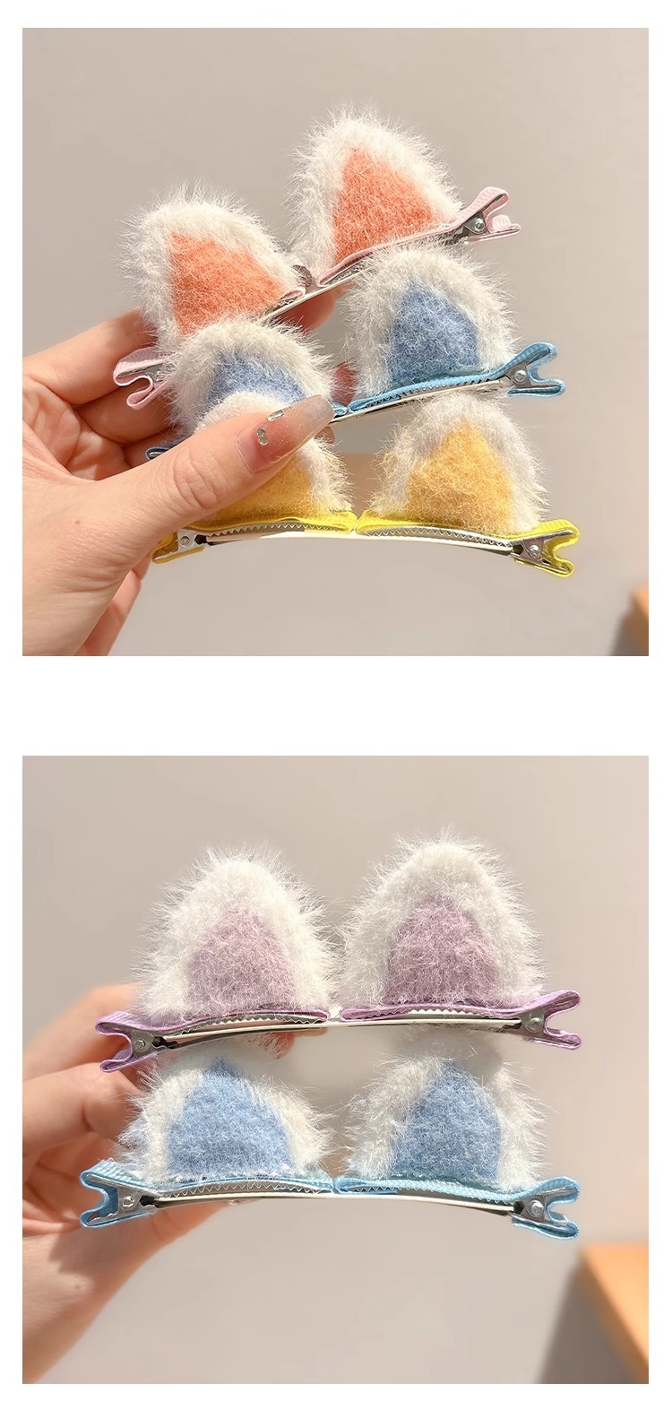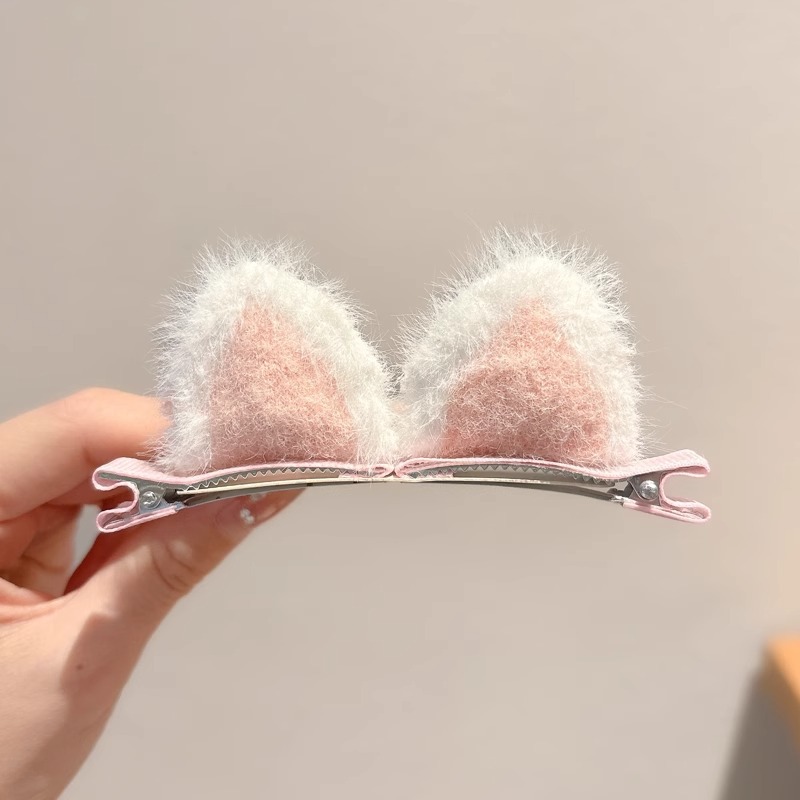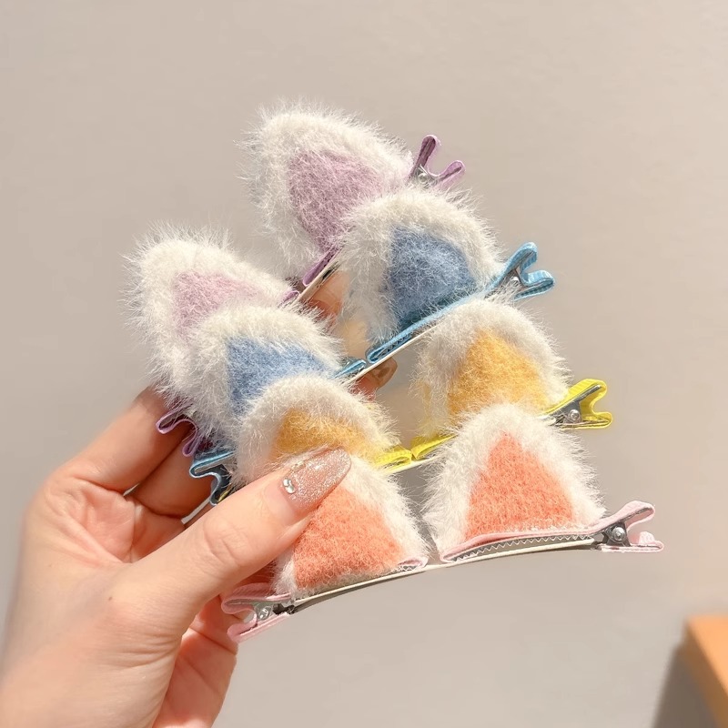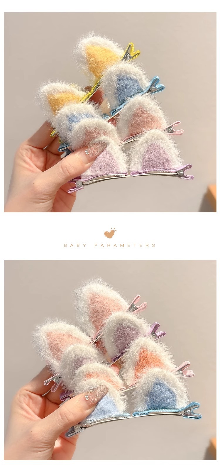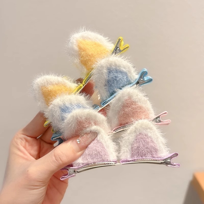 秋冬儿童猫耳朵发夹可爱女孩兔耳朵夹子头饰女童宝宝毛毛发卡顶夹