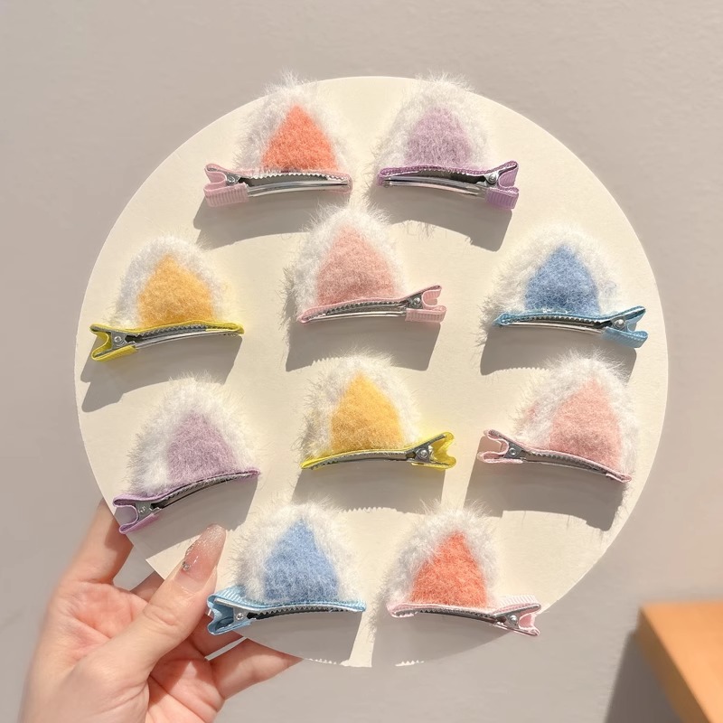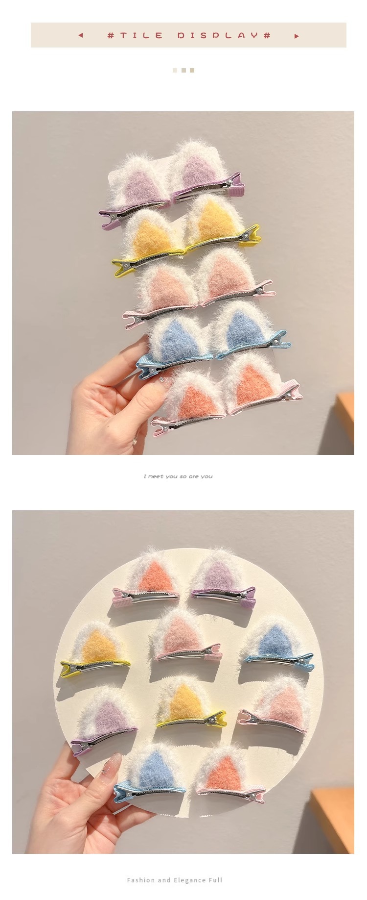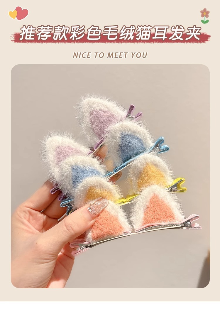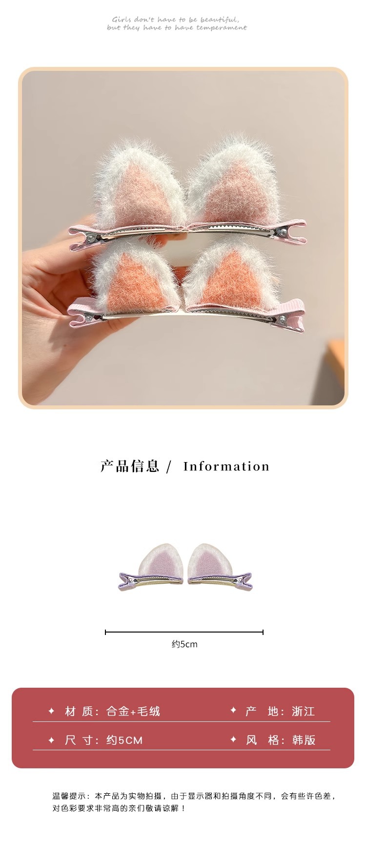 秋冬儿童猫耳朵发夹可爱女孩兔耳朵夹子头饰女童宝宝毛毛发卡顶夹