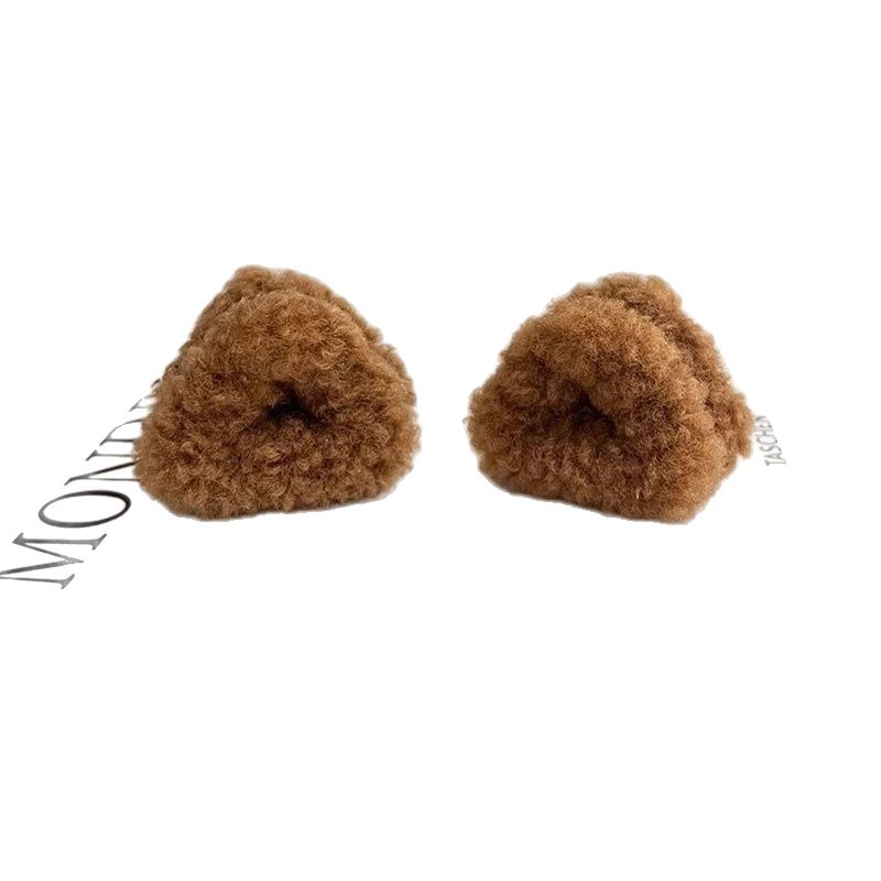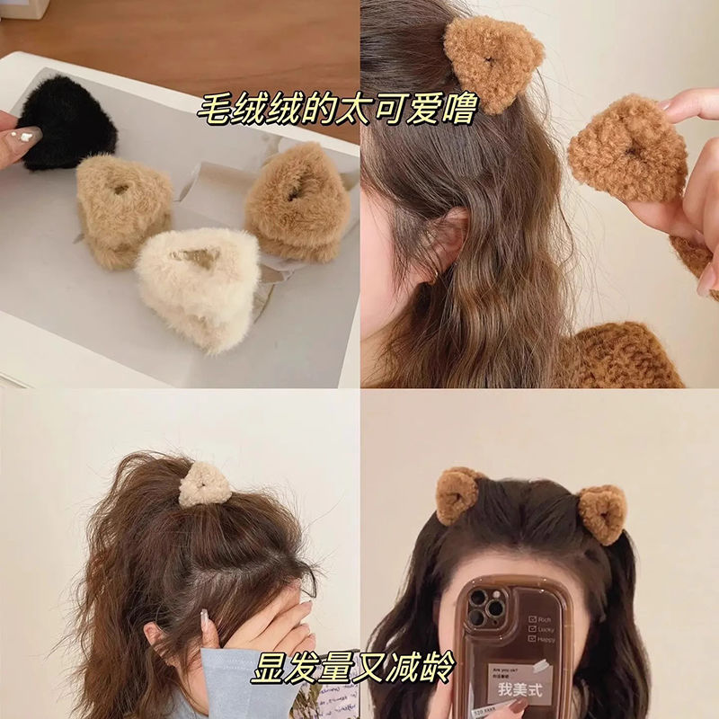 秋冬毛绒羊羔毛可爱猫耳朵小抓夹甜美女孩三角形顶夹侧边发夹头饰