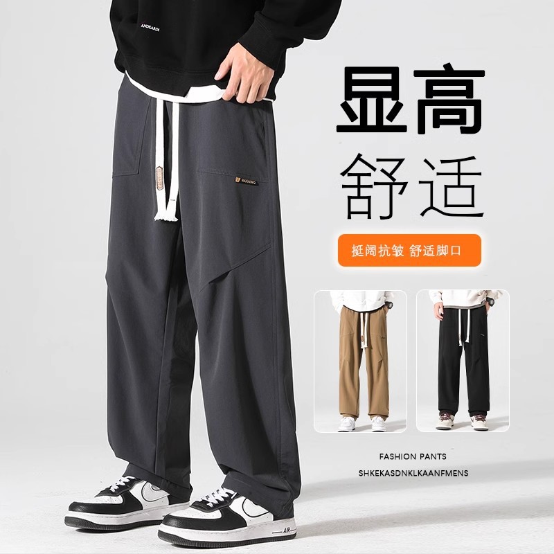美式休闲工装裤男夏季薄款潮流胖子加肥加大码宽松直筒阔腿运动裤