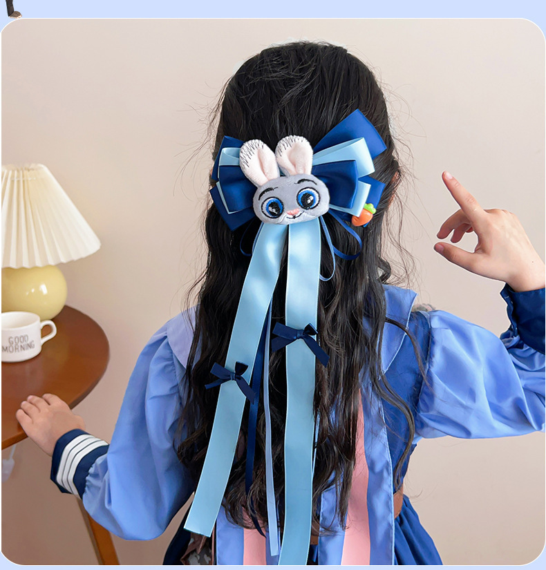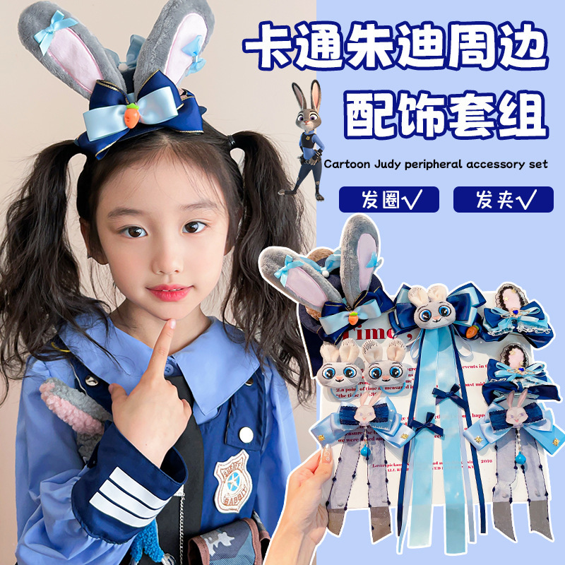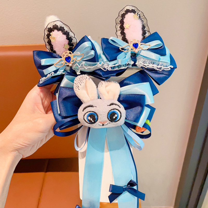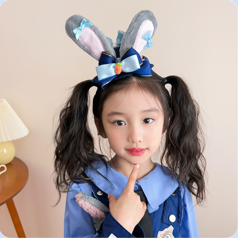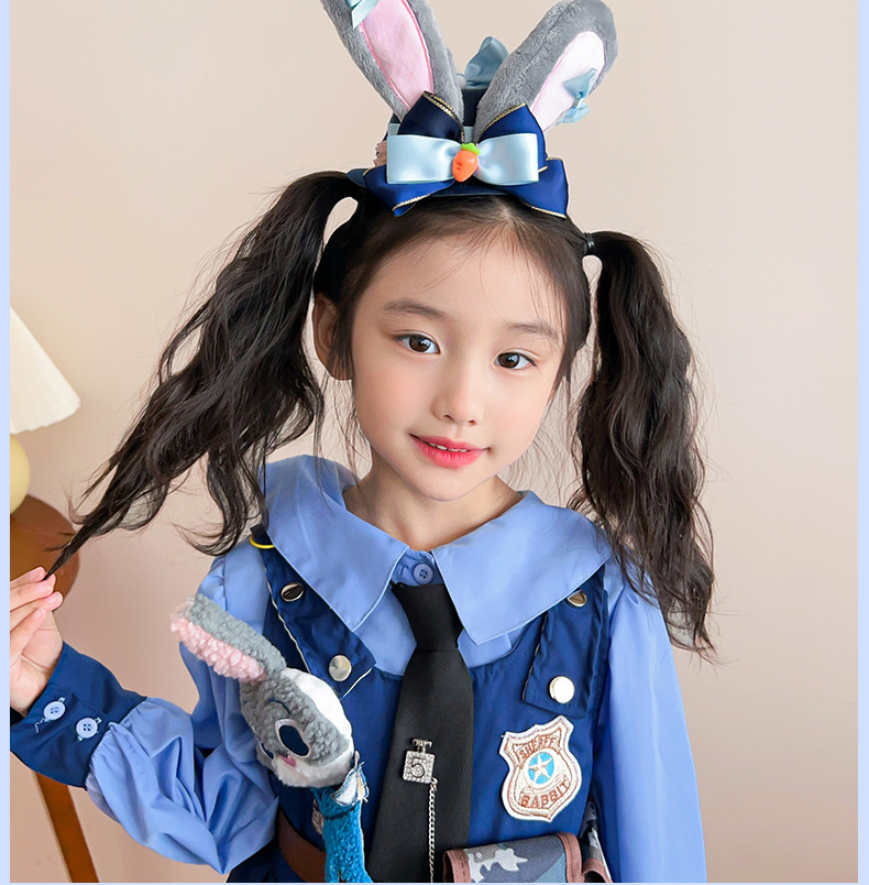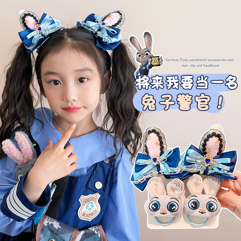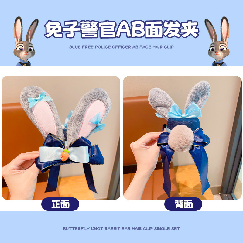 儿童发卡卡通兔子警官头饰小女孩动物城兔耳朵蝴蝶结头夹发夹发饰