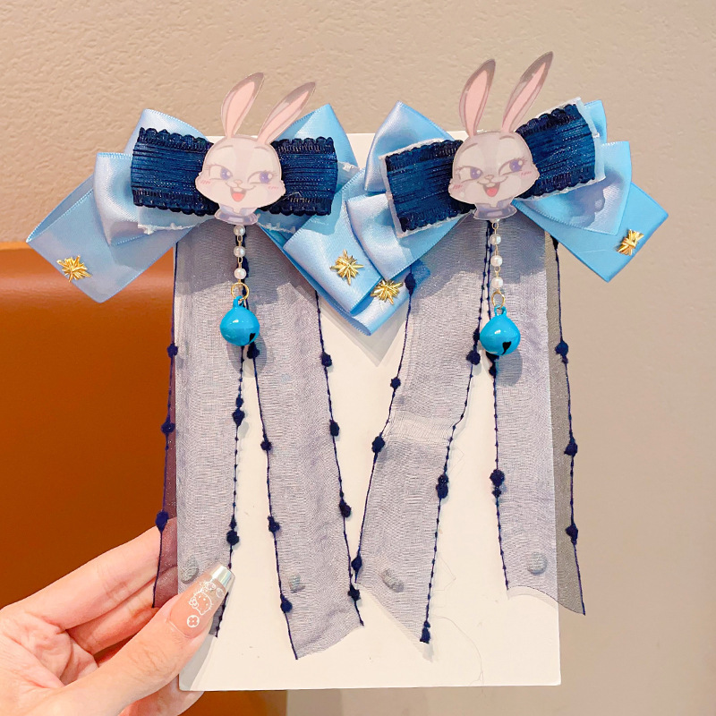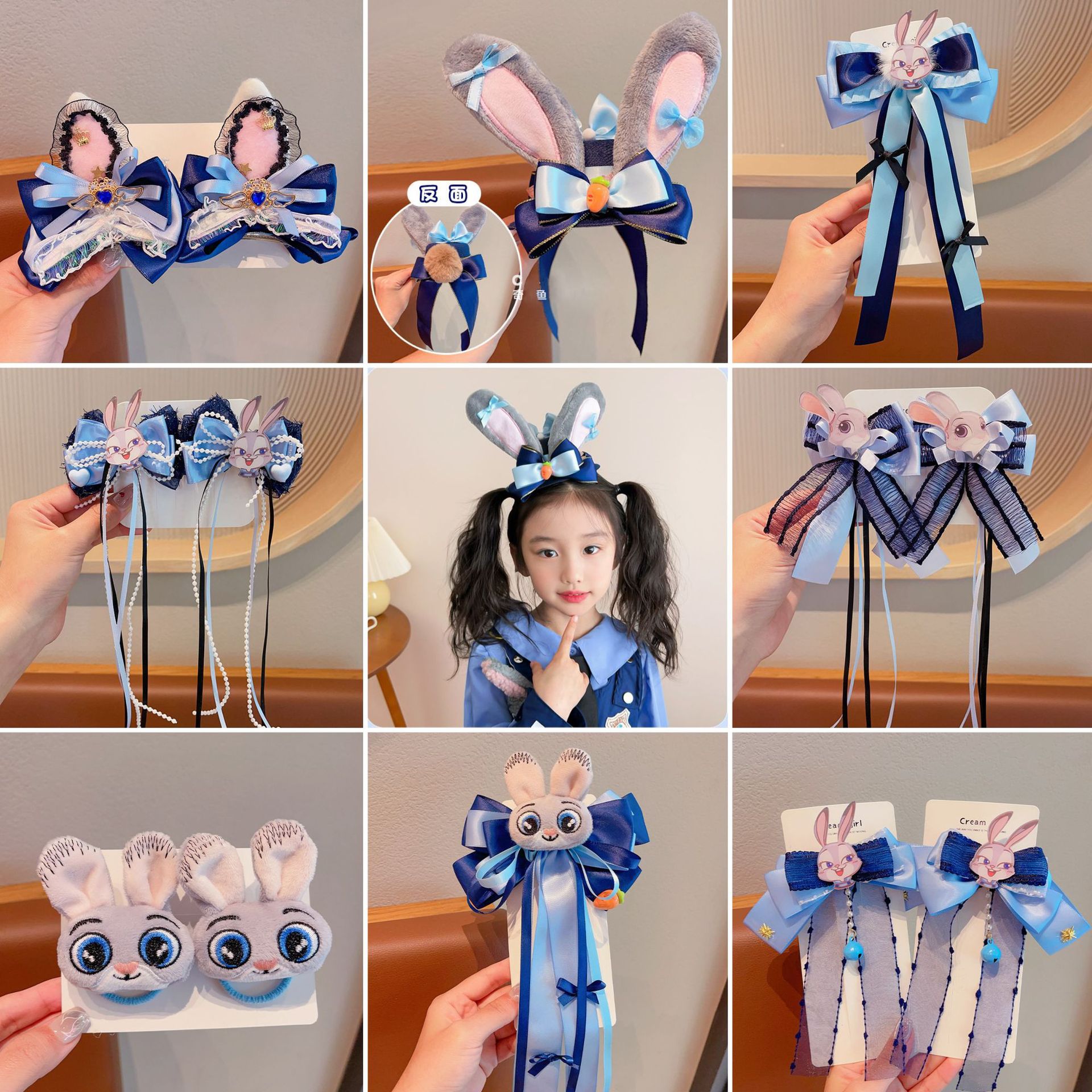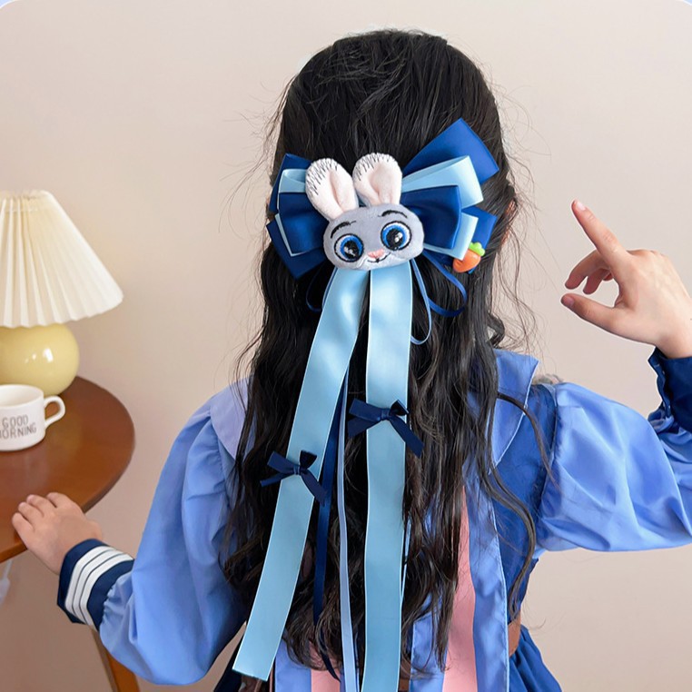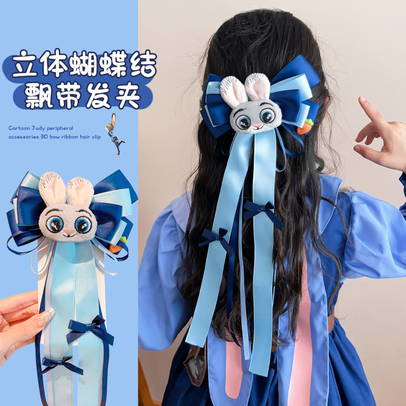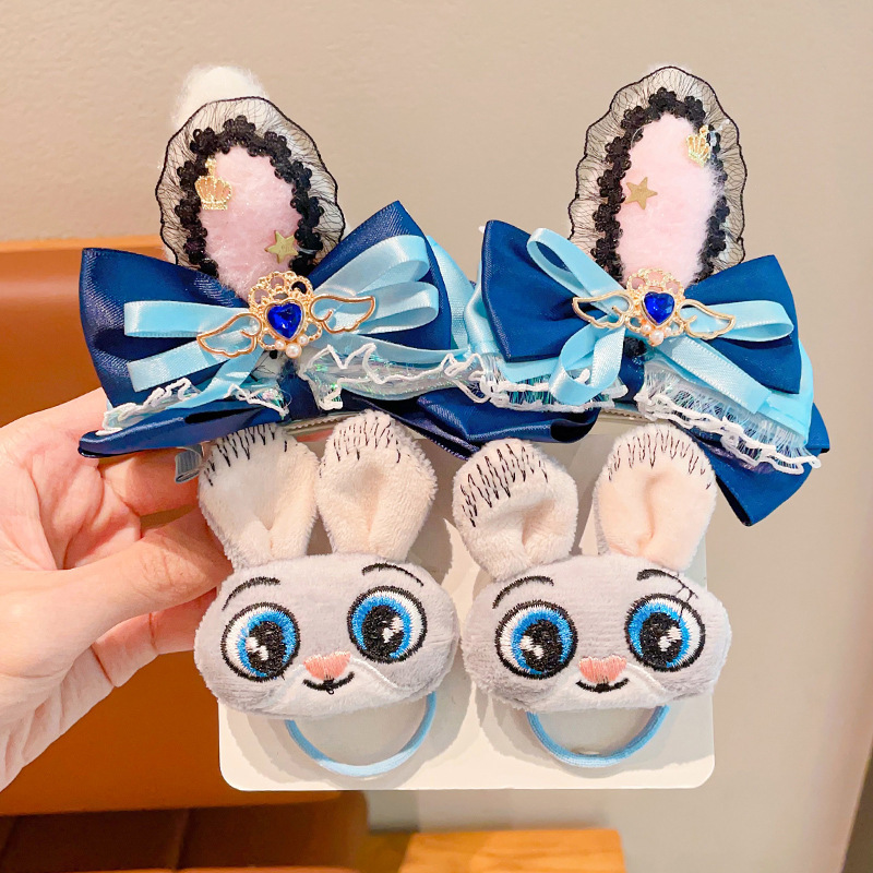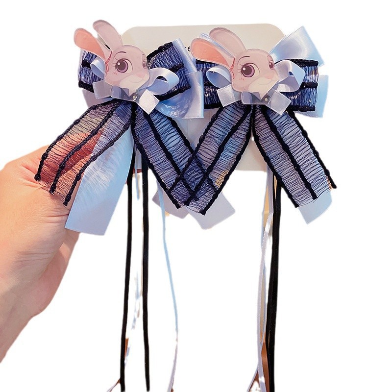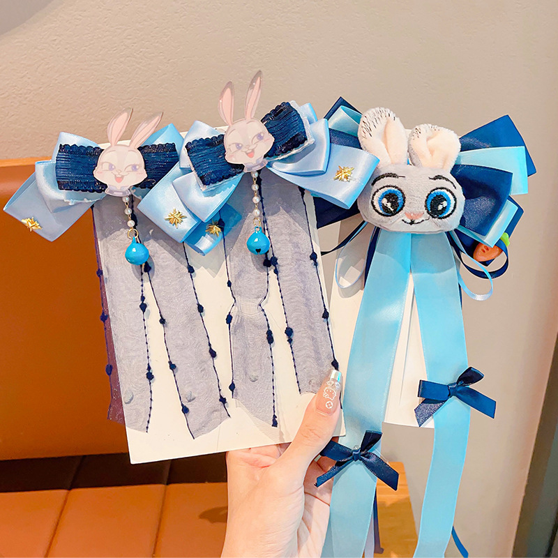 儿童发卡卡通兔子警官头饰小女孩动物城兔耳朵蝴蝶结头夹发夹发饰