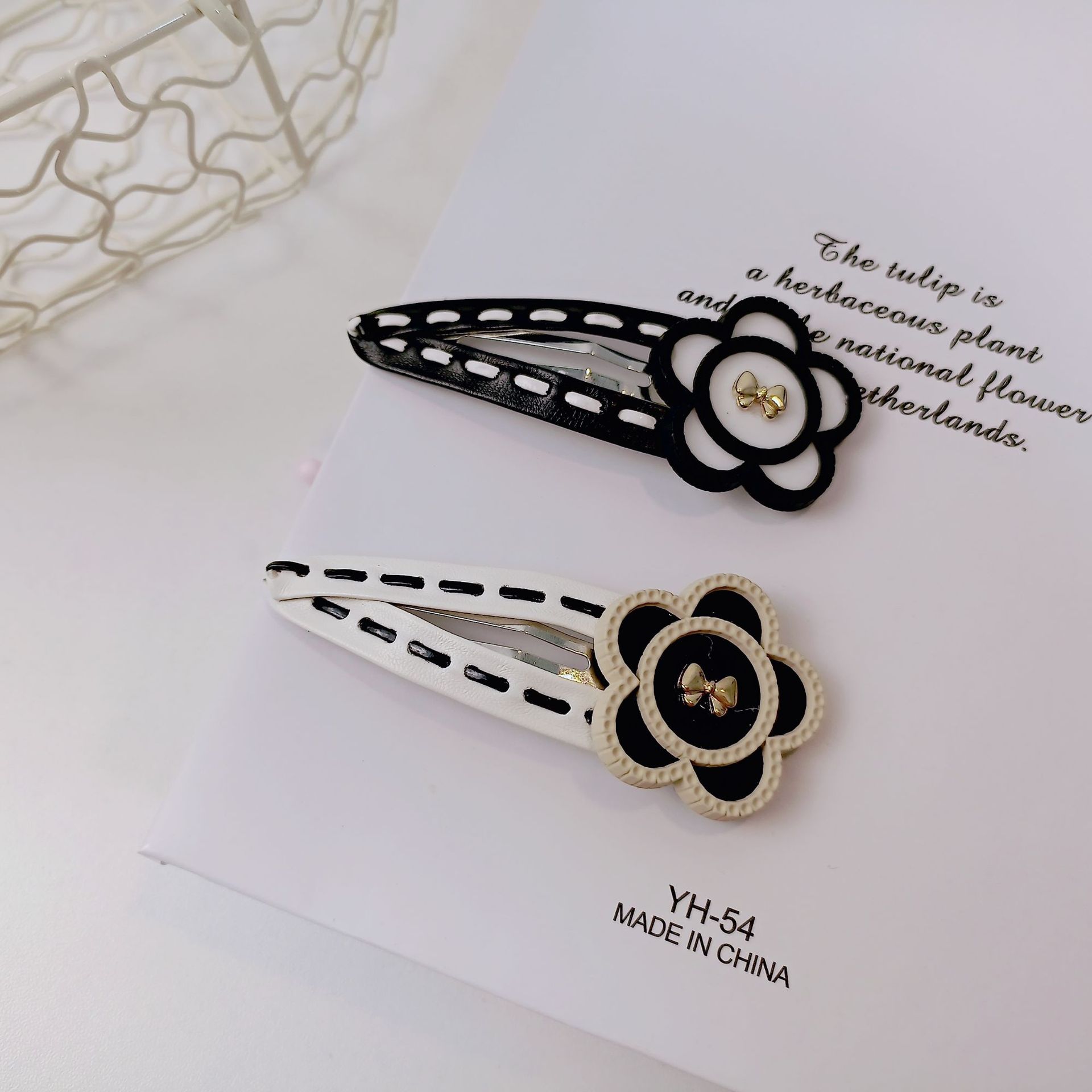 韩版女黑白系皮边夹小香风花朵BB夹碎发刘海侧边夹甜美后脑勺顶夹