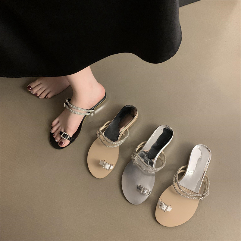 新款鸽子蛋一字拖夏外穿平底凉拖水钻内增高夹趾沙滩凉鞋潮