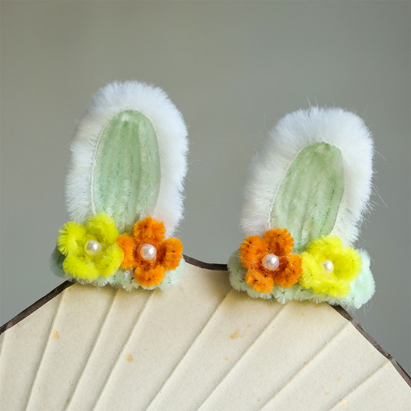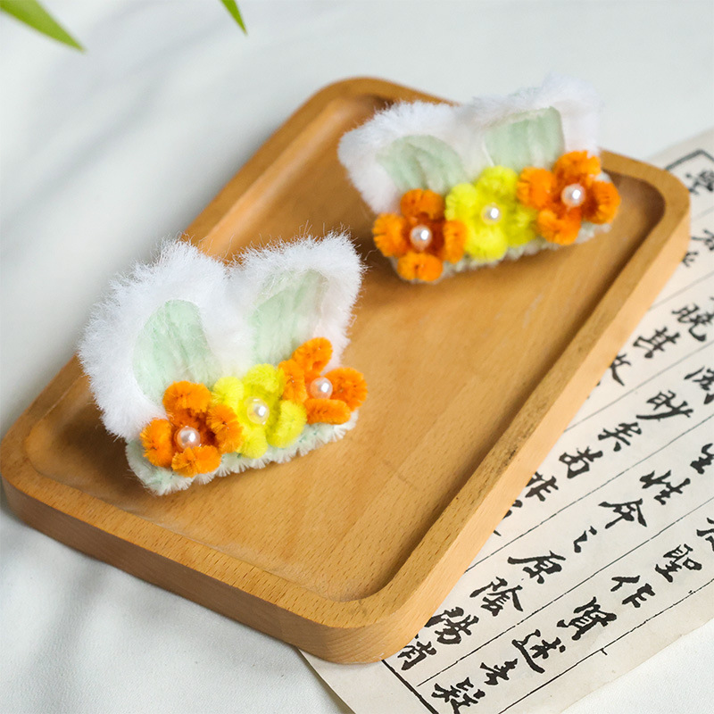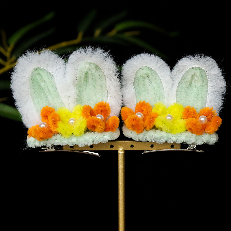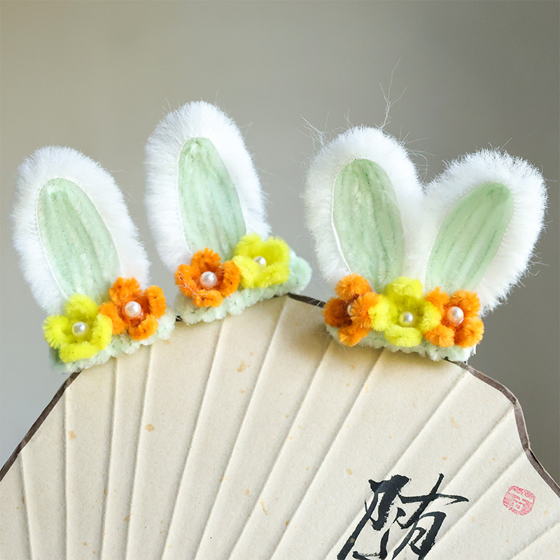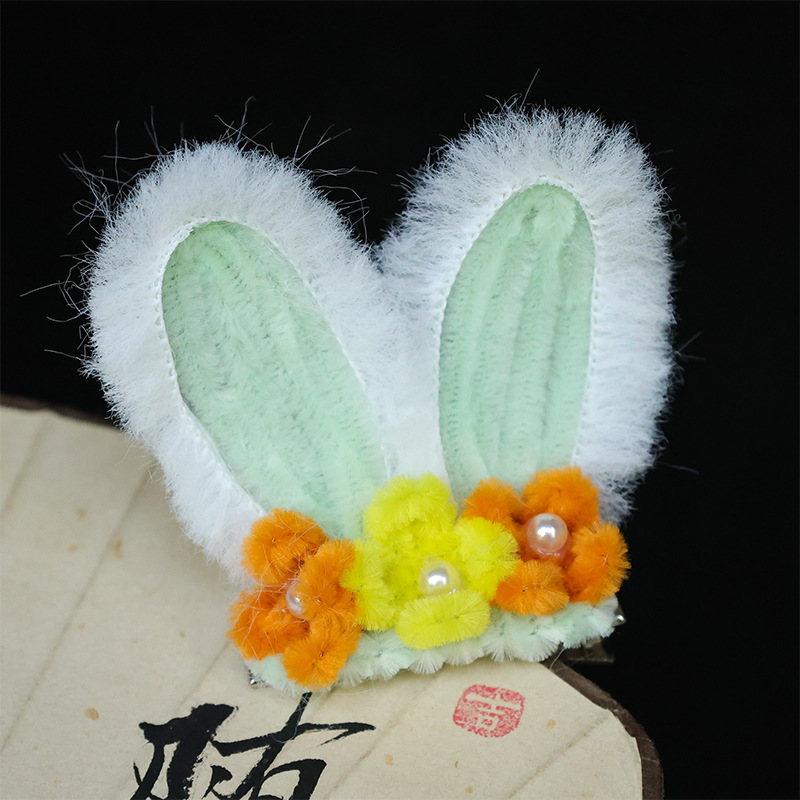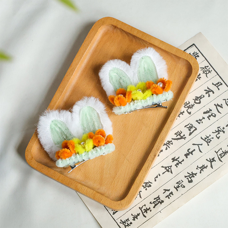 可爱兔耳朵儿童发夹清新扭扭棒夹子配饰古风女童发饰发卡秋冬头饰