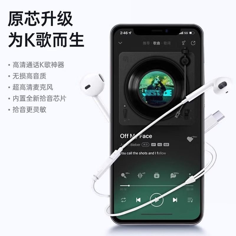 苹果有线耳机适用于iPhone14/13/12/11/8线控带麦游戏K歌无需蓝牙