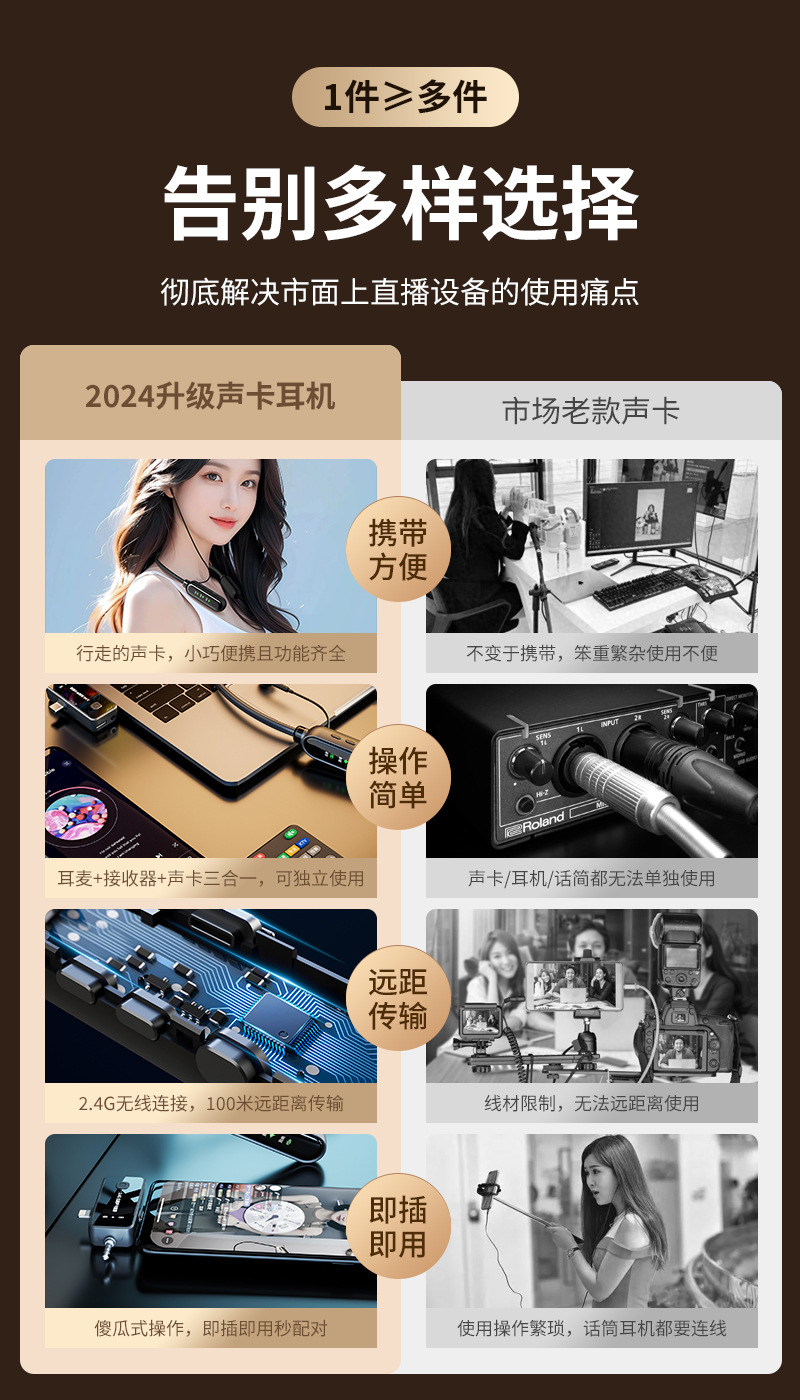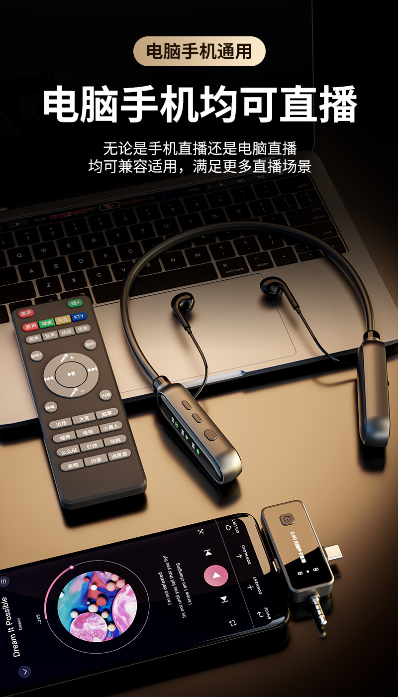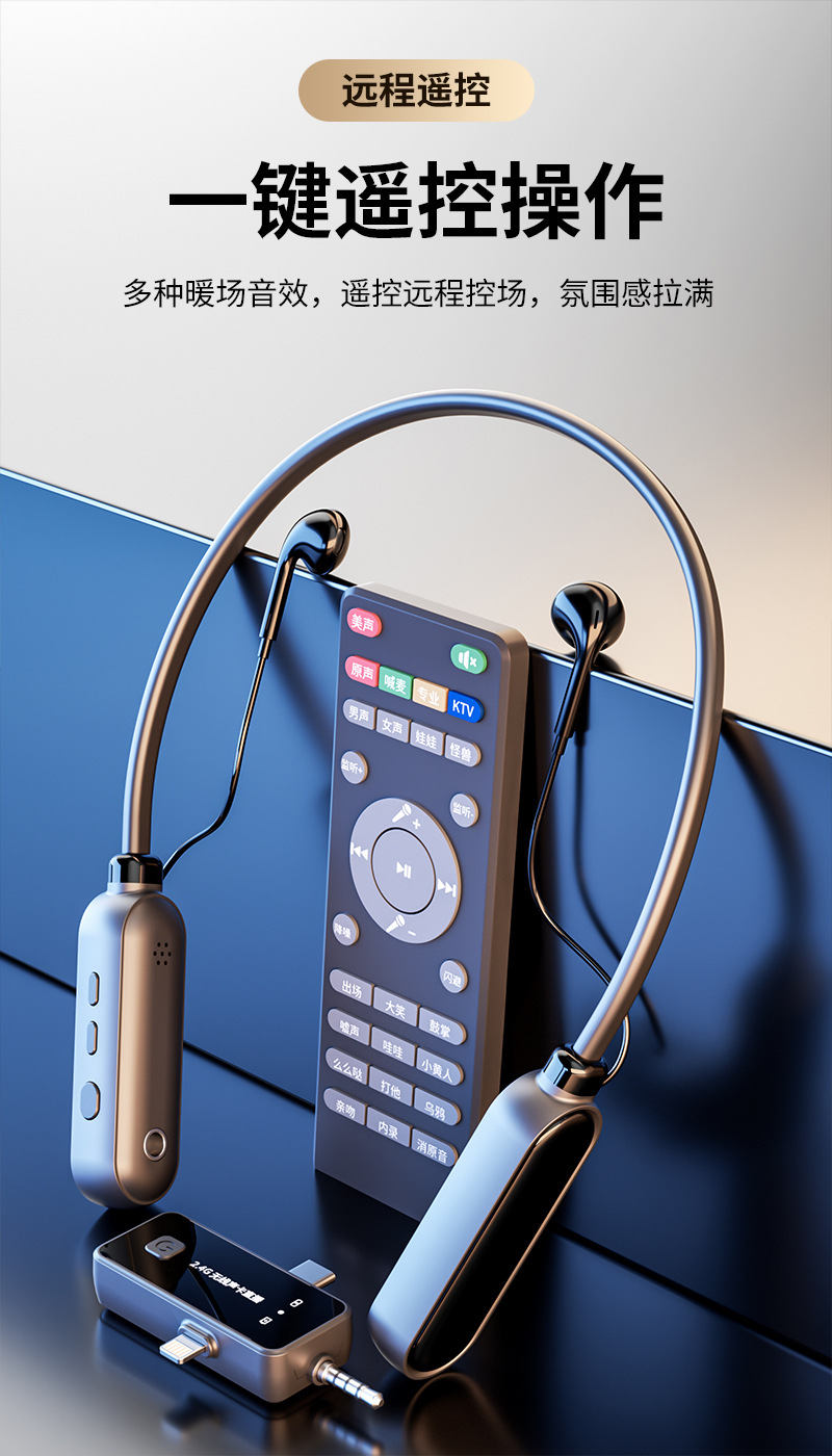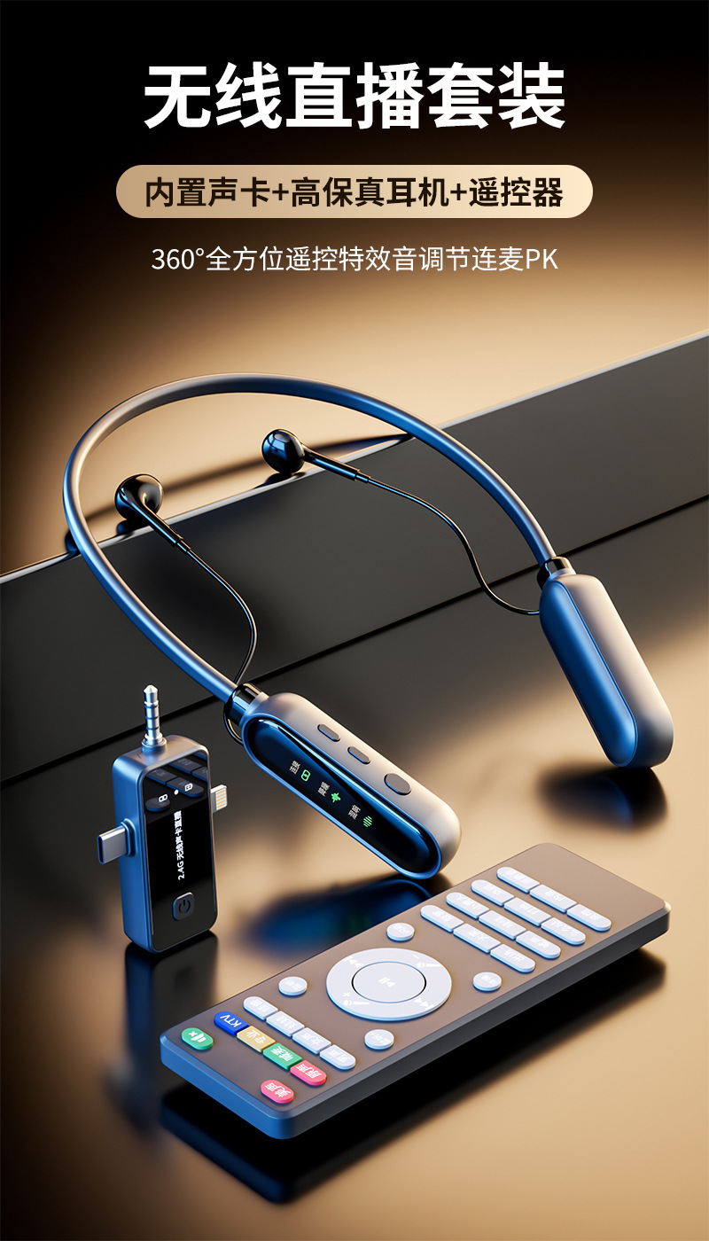 无线声卡一体机麦克风监听耳机k歌主播耳机三合一声卡遥控器
