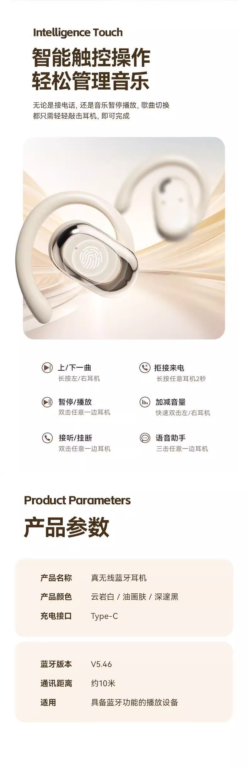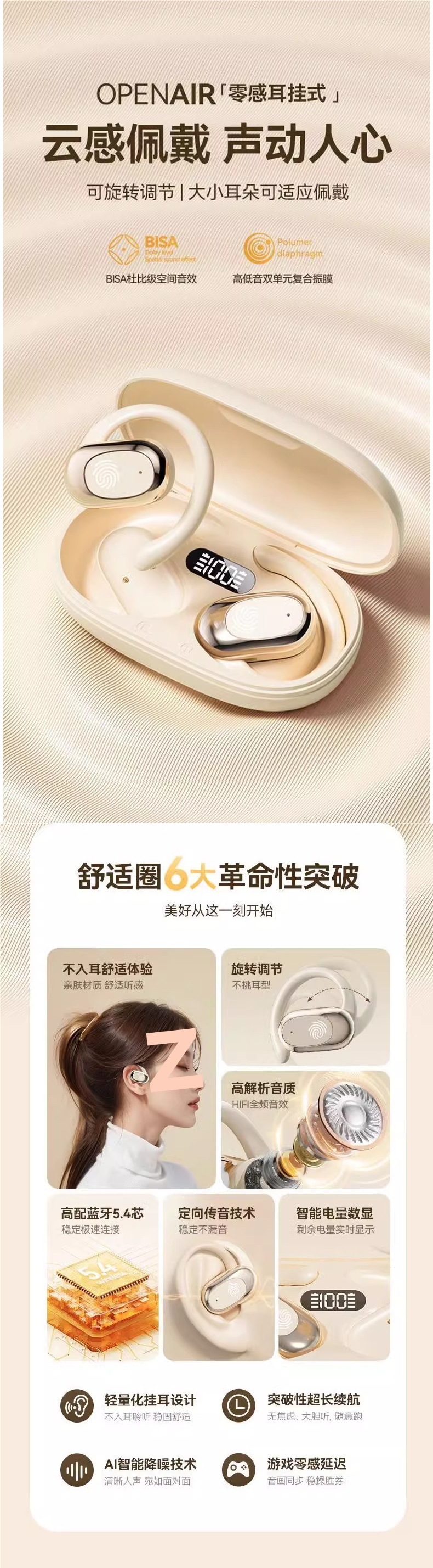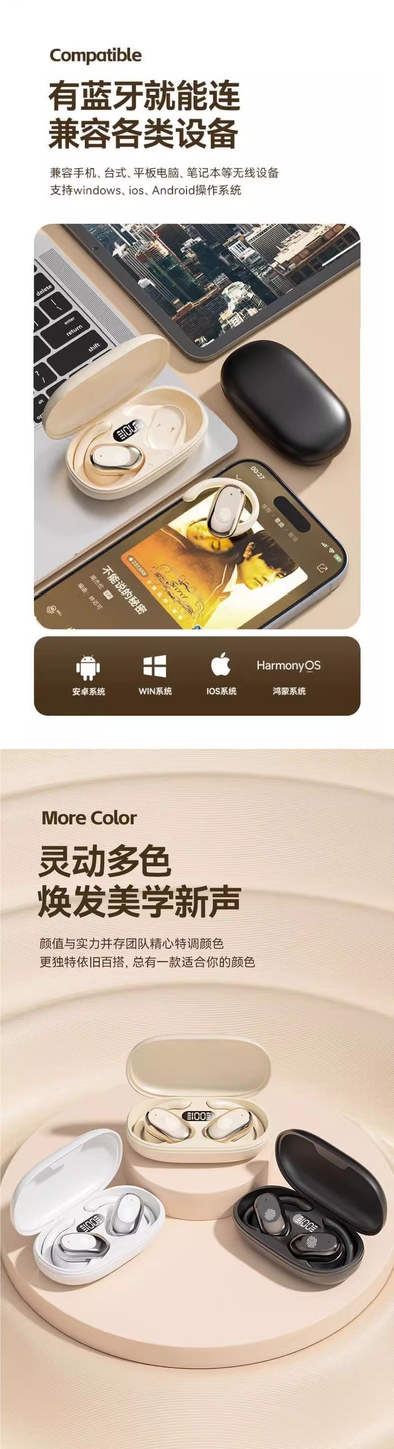 - 旗舰版|肤色【5.3芯片LED数显无损HiFiu音质开盖即连智能触控云感舒适佩戴】