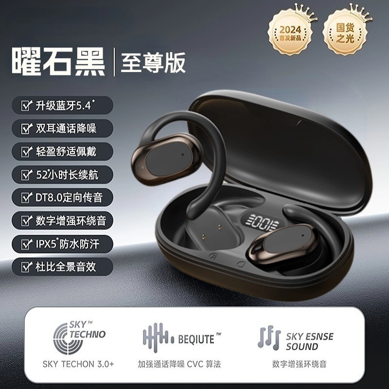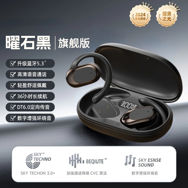 - 旗舰版|黑色【5.3芯片LED数显无损HiFiu音质开盖即连智能触控云感舒适佩戴】