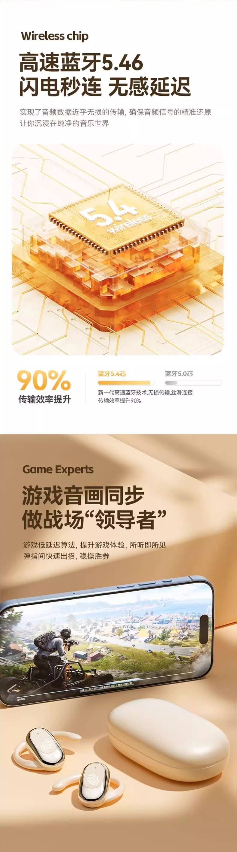 - 至尊版|肤色【升级蓝牙5.4定向传音降噪不漏音5.4双核芯片千元杜比全景无损音效电竞无感延迟