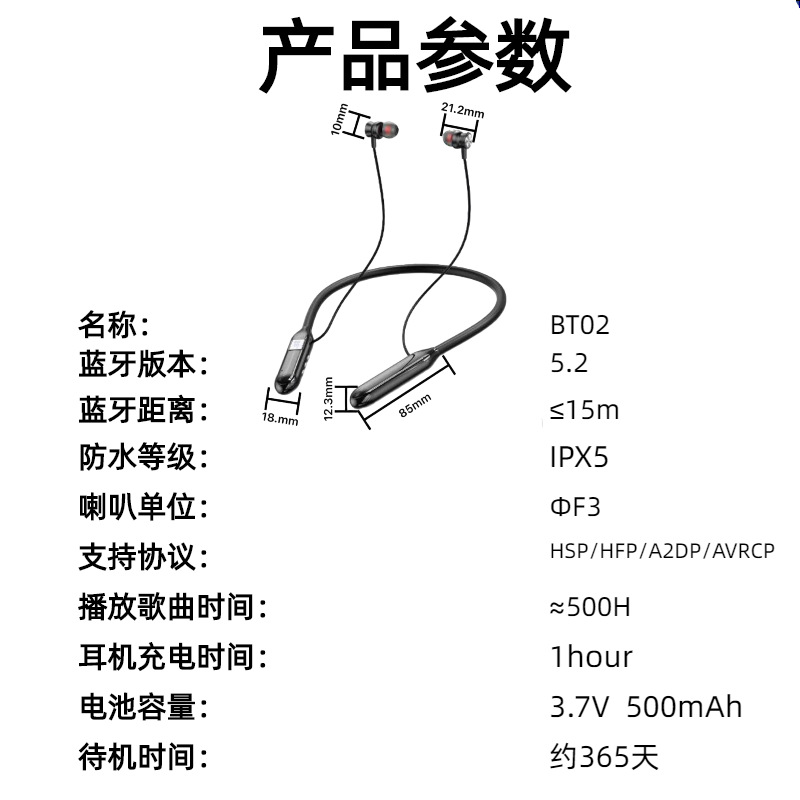 新款挂脖式蓝牙耳机大电量带数显游戏运动颈挂耳机可插卡使用