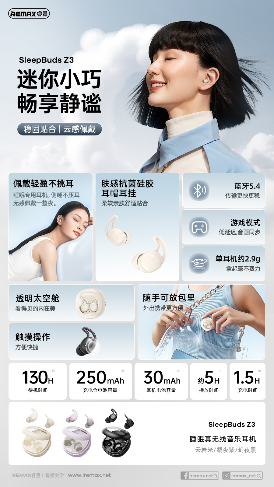 remax睡眠耳机迷你小巧入耳式无线蓝牙耳机硅胶软塞降噪音乐耳机