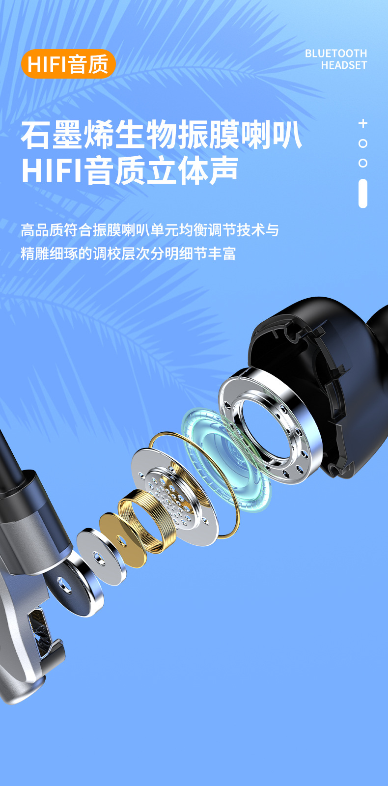 严选蓝牙无线耳机挂脖运动双耳入耳颈挂式超长待机续航