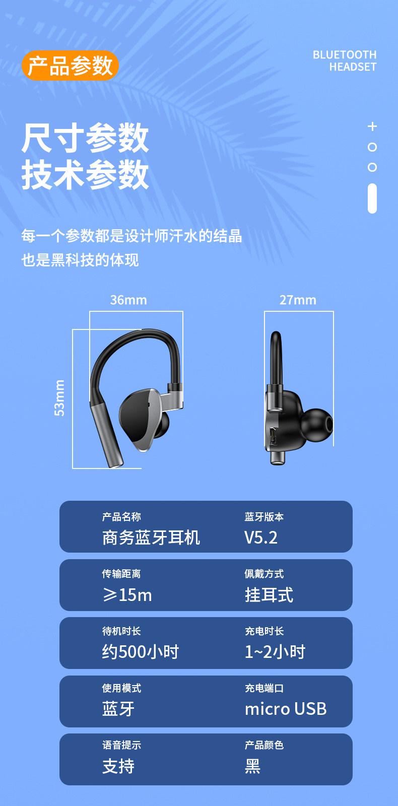 B02蓝牙耳机5新挂耳式入耳司机外卖用耳无线超长续航