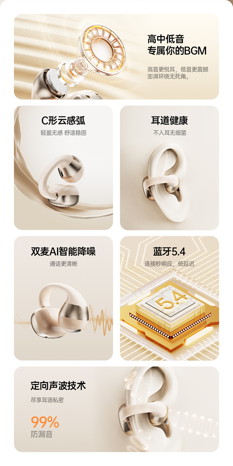 2025新款蓝牙耳机M09耳夹式高颜值久戴不痛不入耳蓝牙无线耳机