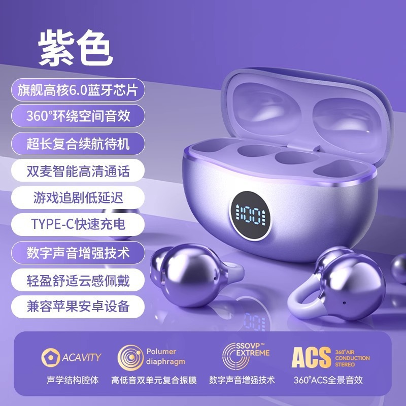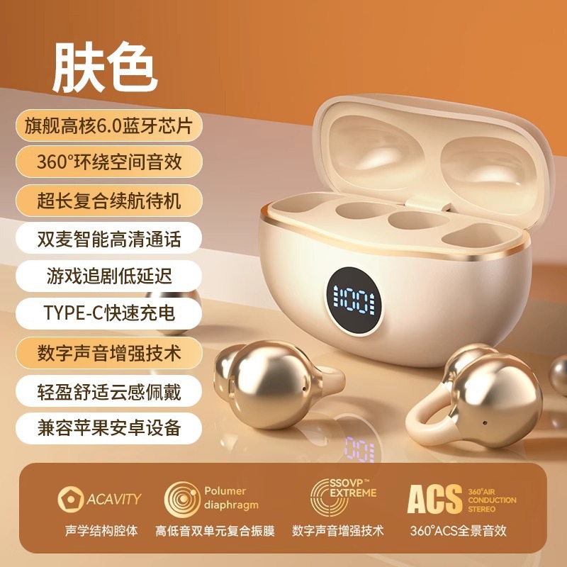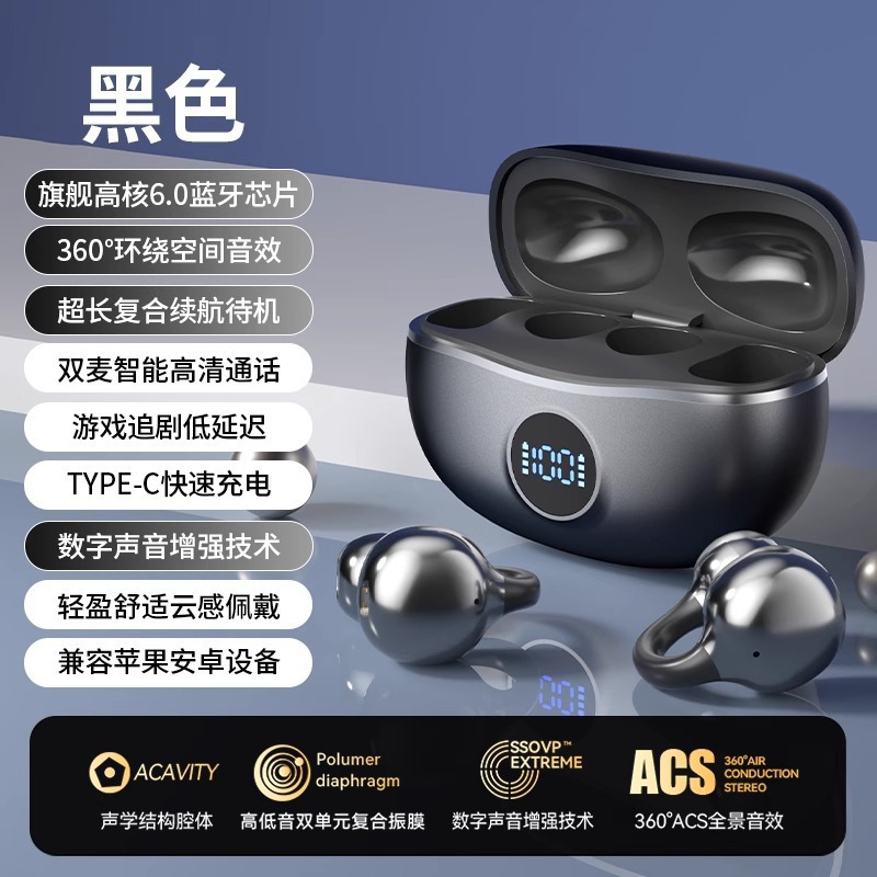 夹耳式蓝牙耳机2025新款气传导运动音乐游戏跑步无线耳夹耳机