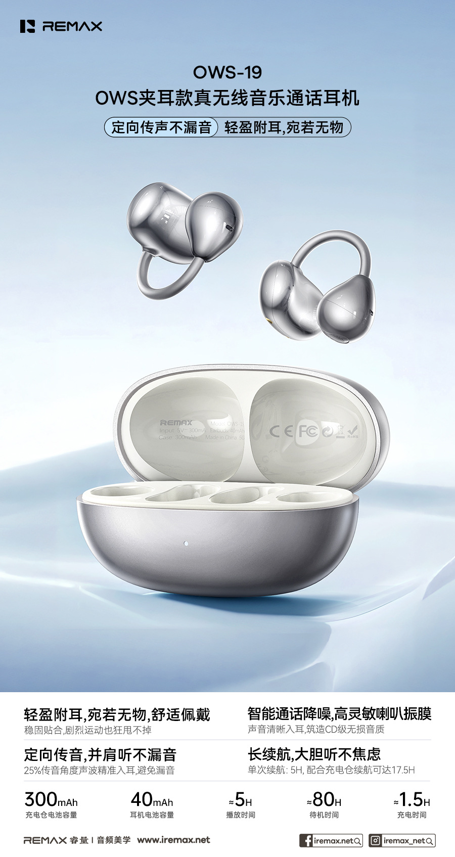 remax新款夹耳式通话降噪无线蓝牙耳机运动音乐夹耳无线耳机