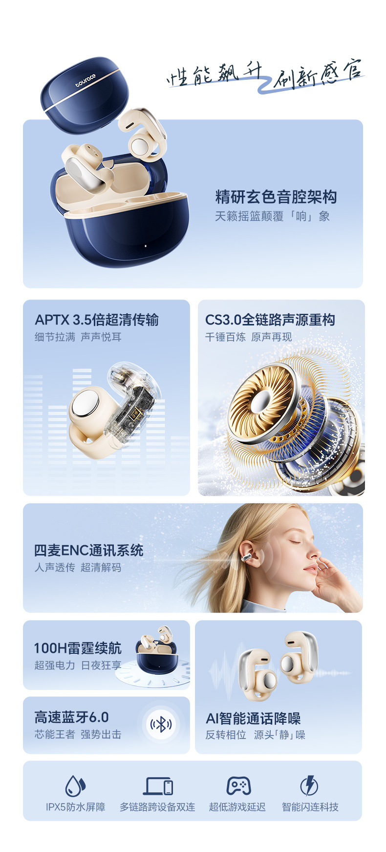 海威特新品OWS开放运动蓝牙耳机夹耳降噪不入耳耳夹无线蓝牙耳机