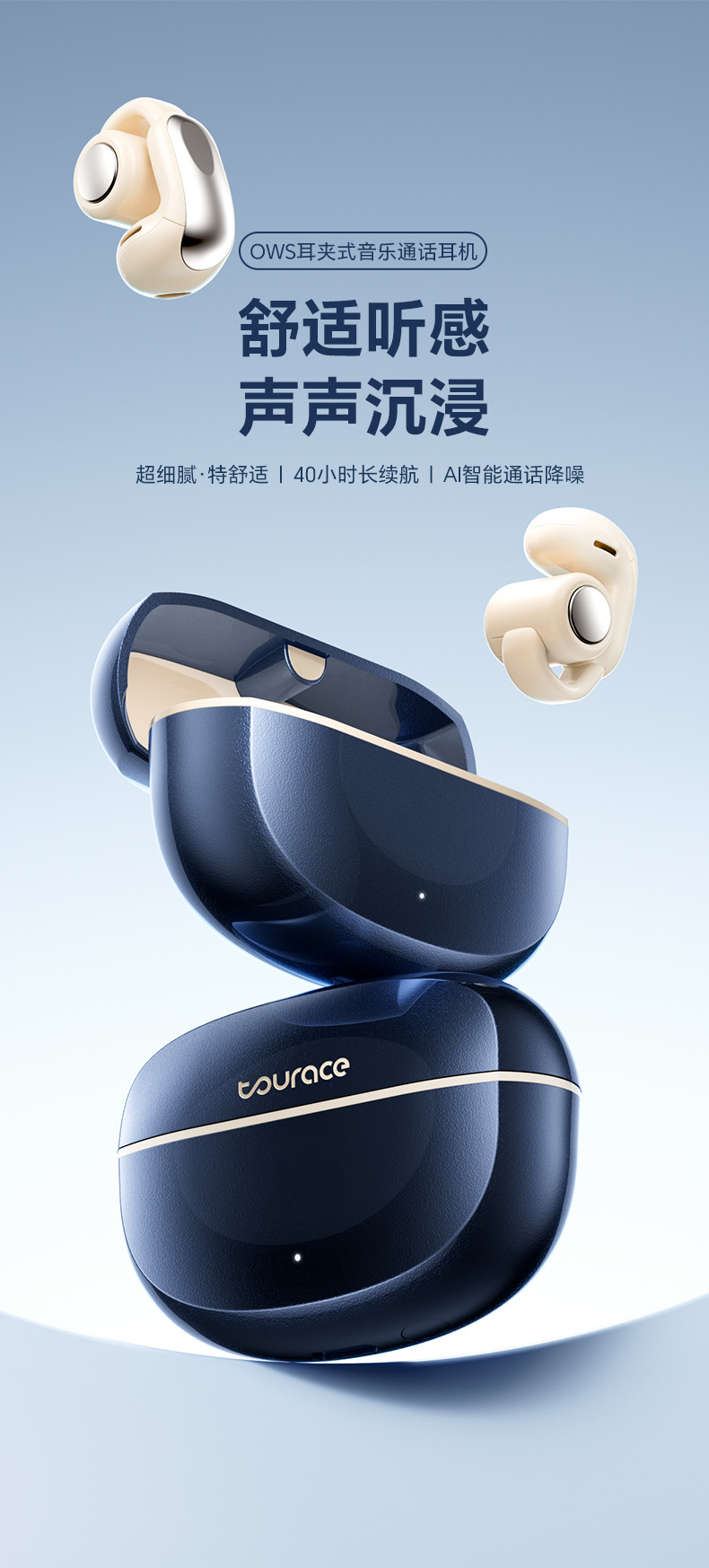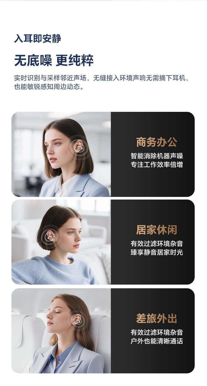 2025新款AI蓝牙耳机夹耳式超长续航运动降噪蓝牙无线耳机