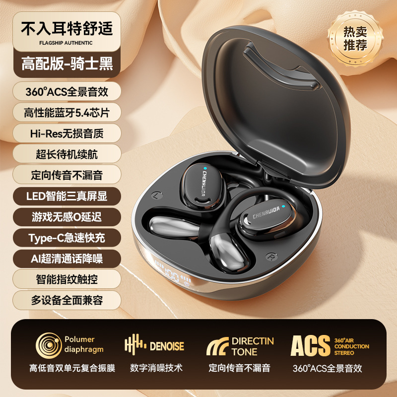 2025年新款骨传导蓝牙耳机耳夹式不入耳超长续航运动跑步降噪