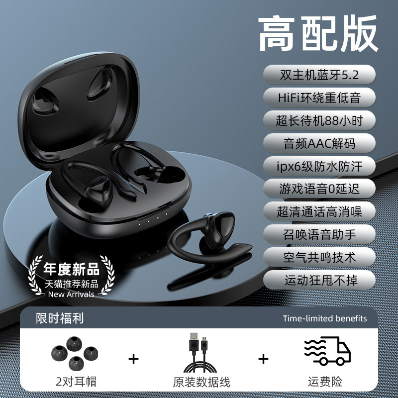 防水无线耳挂蓝牙5.4降噪耳机超长续航蓝牙耳机可旋转立体音效S03