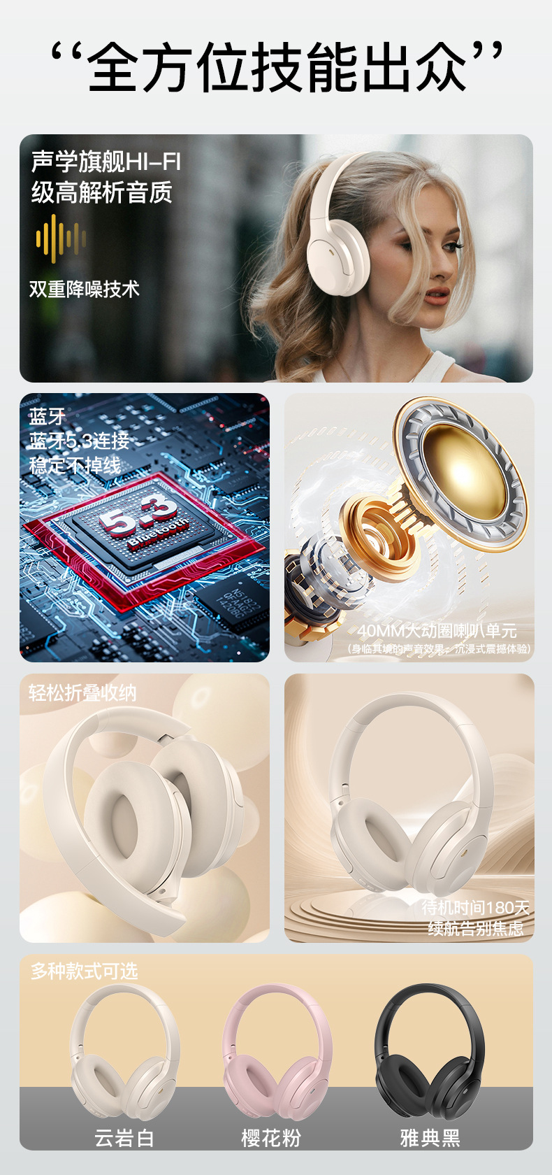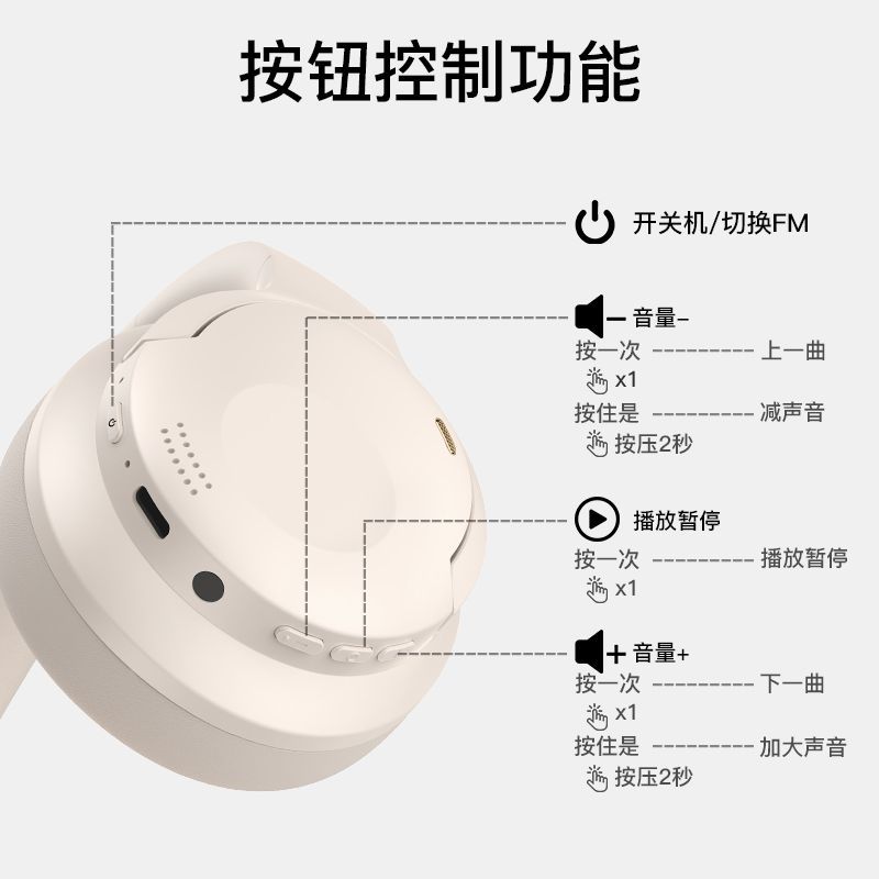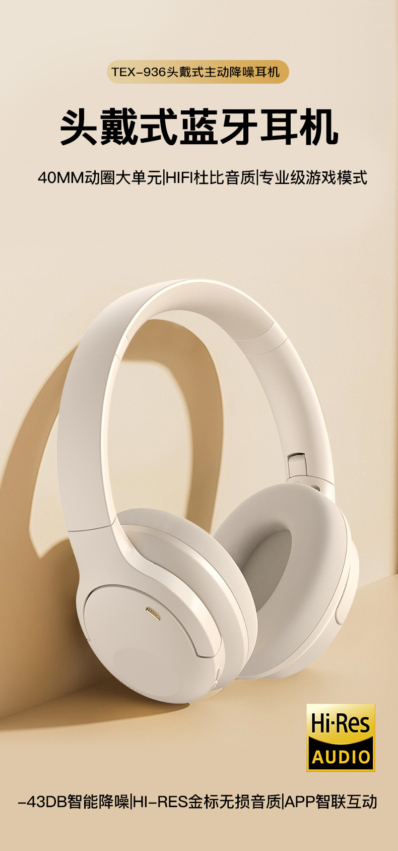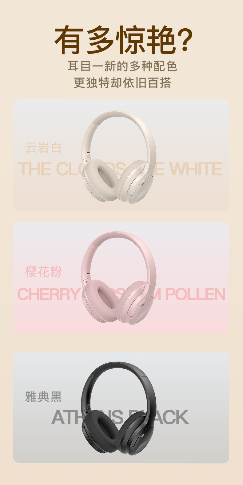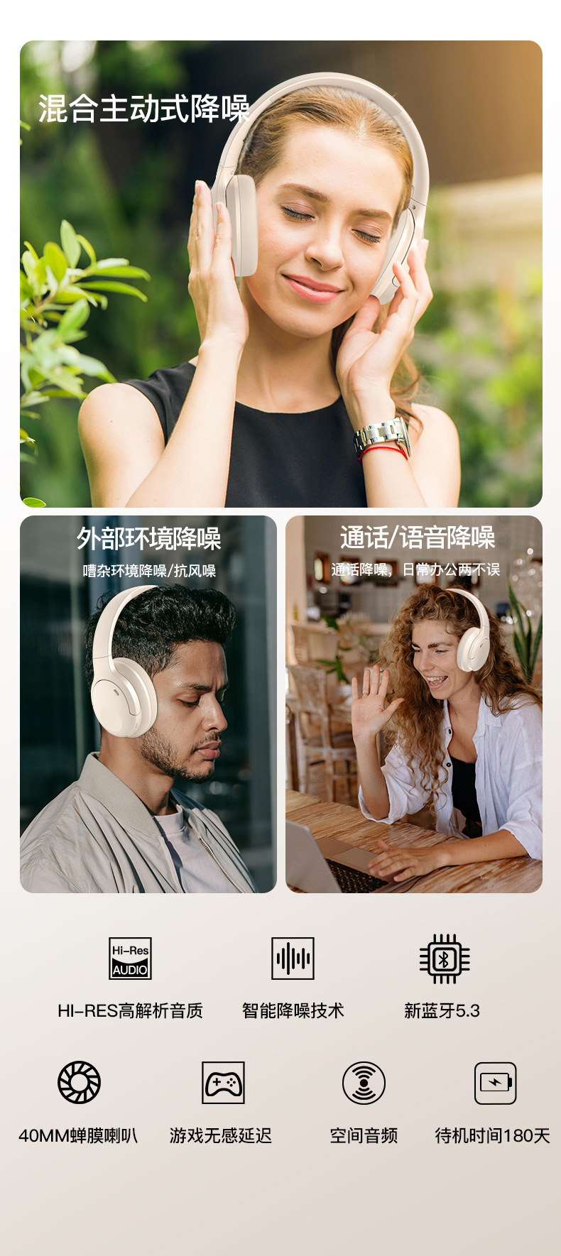新款ANC主动降噪头戴式耳机无线重低音超长续航蓝牙