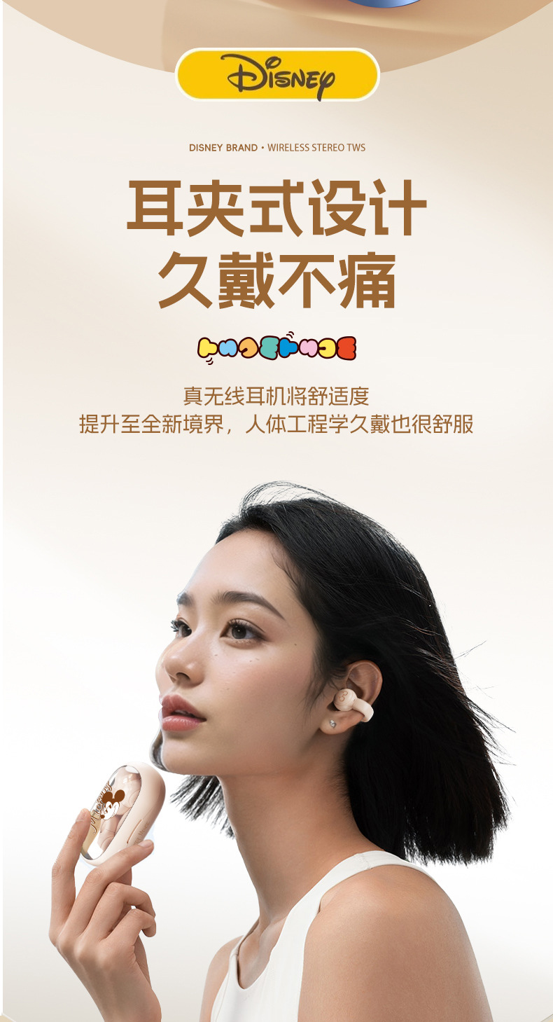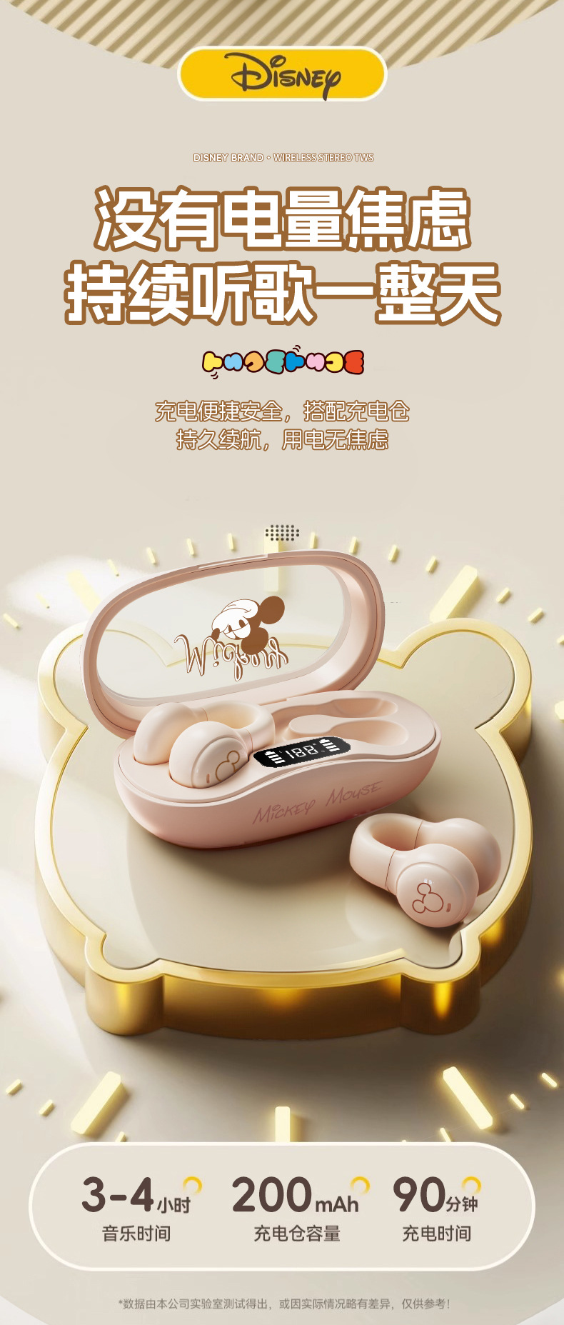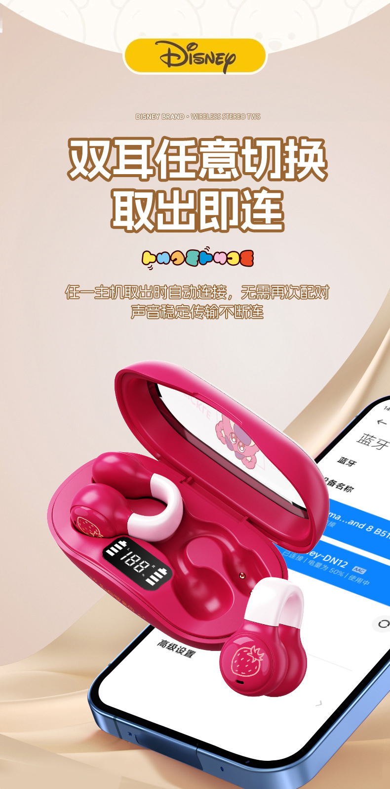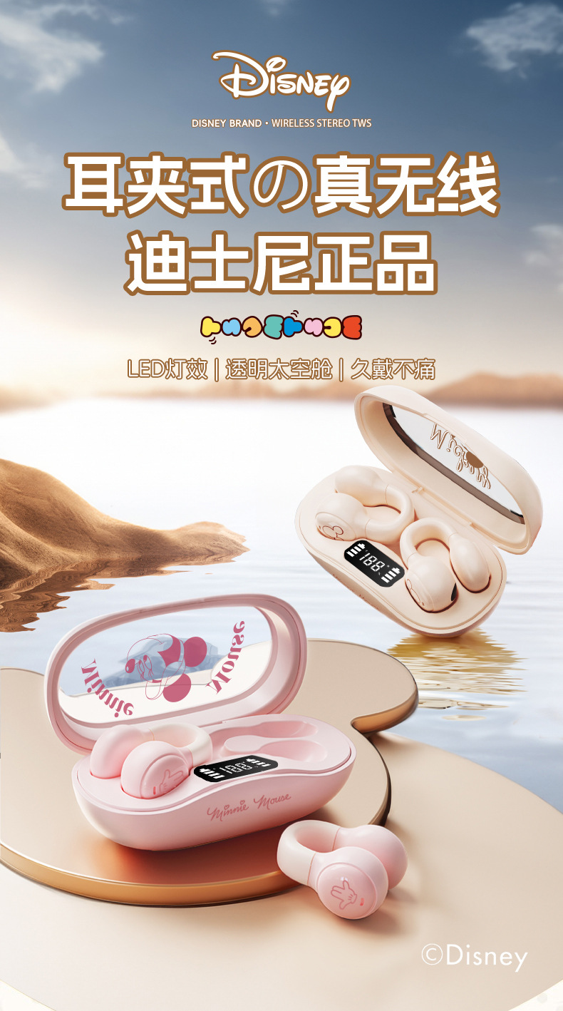 Disney/迪士尼正品DN12夹耳式真无线降噪蓝牙耳机呼吸灯