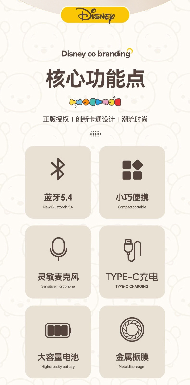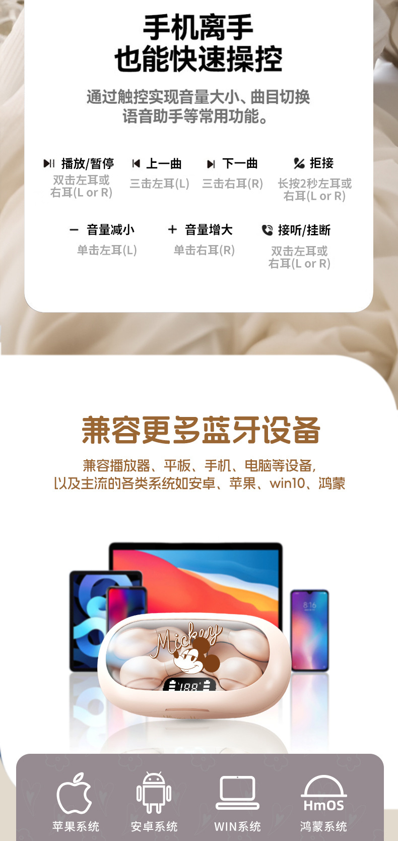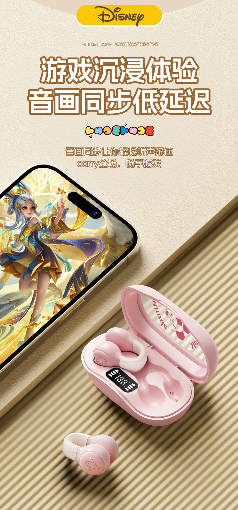 Disney/迪士尼正品DN12夹耳式真无线降噪蓝牙耳机呼吸灯