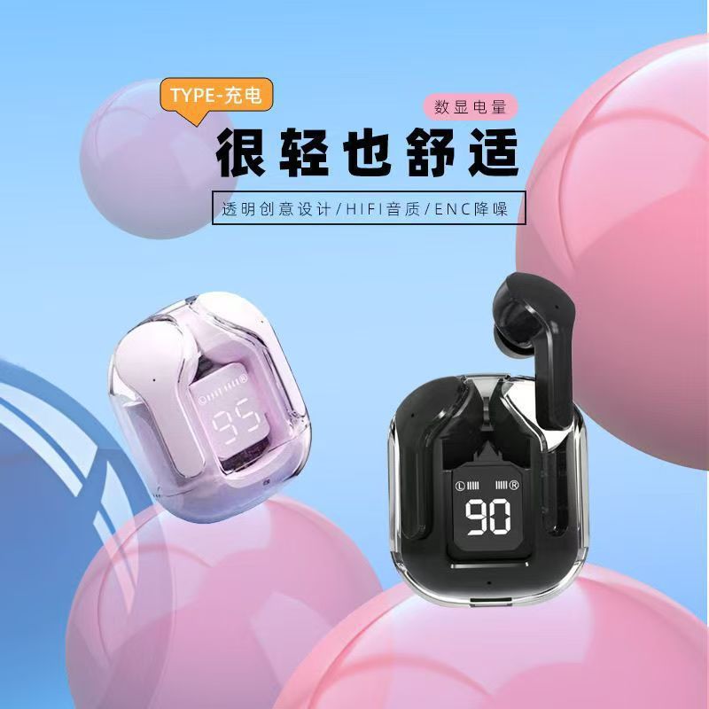 热销款透明一代蓝牙耳机入耳数显游戏运动透明二2代降噪耳机