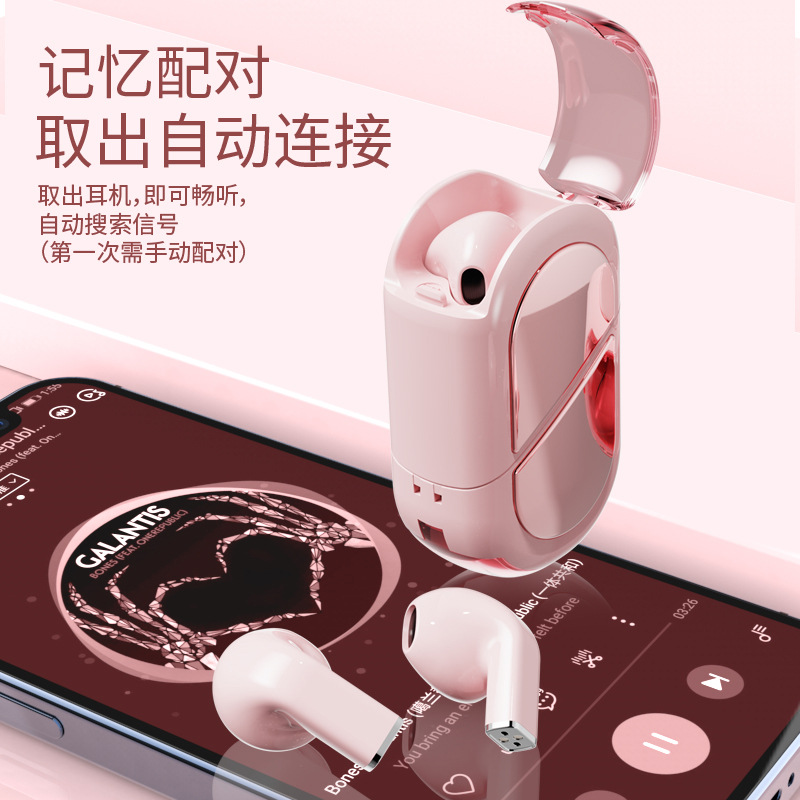 新款K520可变形可爱心形蓝牙耳机K521tws小巧立体声蓝牙